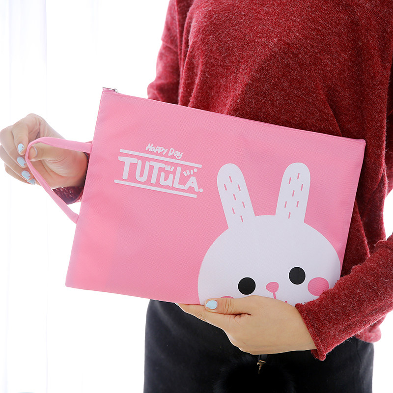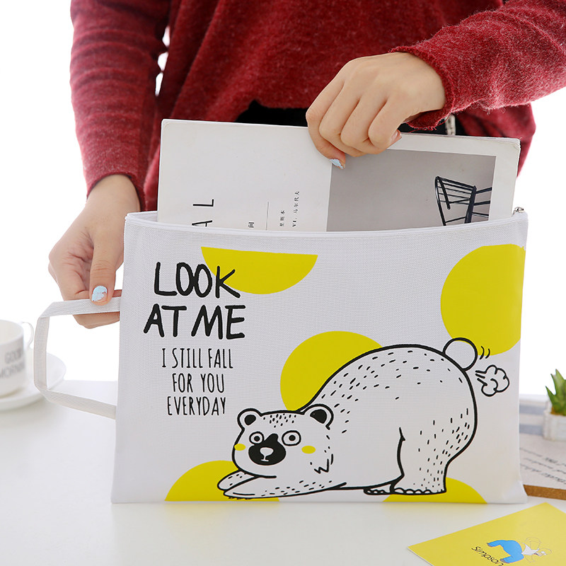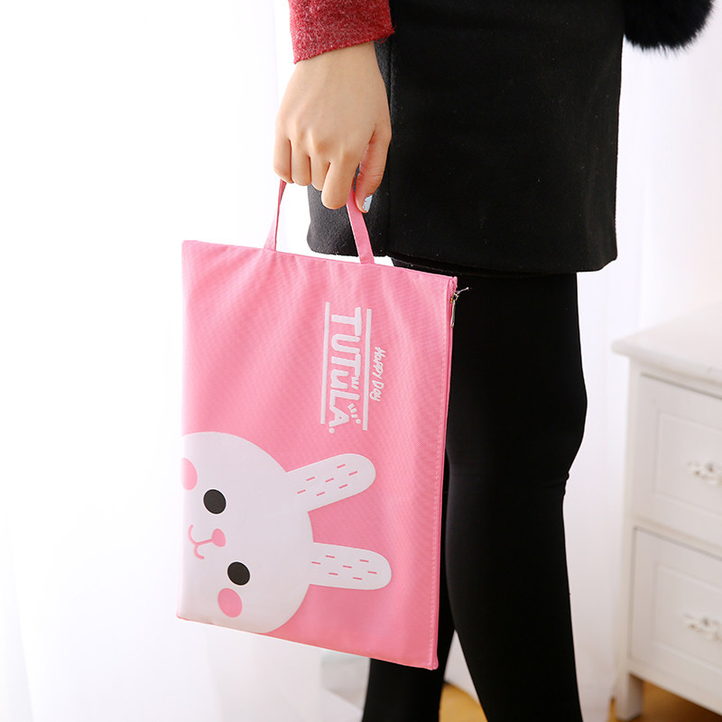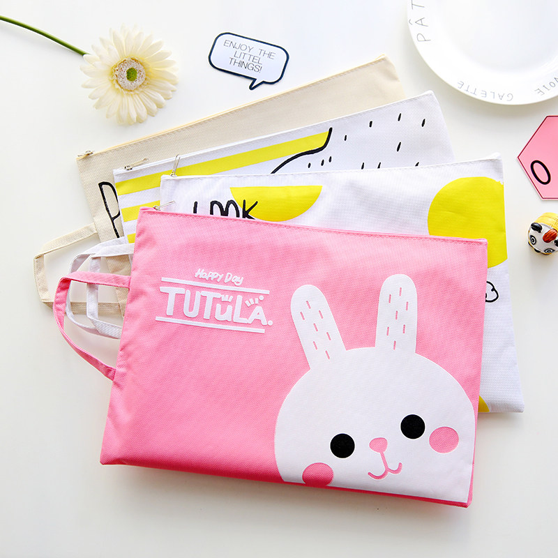 韩国A4学生公文拉链帆布资料档案袋文具卡通可爱手提牛津布文件袋