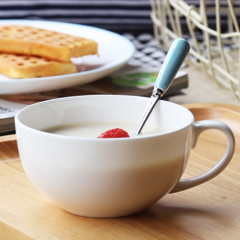 带盖牛奶杯燕麦碗麦片杯陶瓷早餐杯大容量带把可爱水杯骨瓷杯子勺