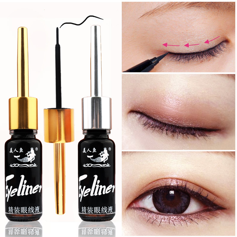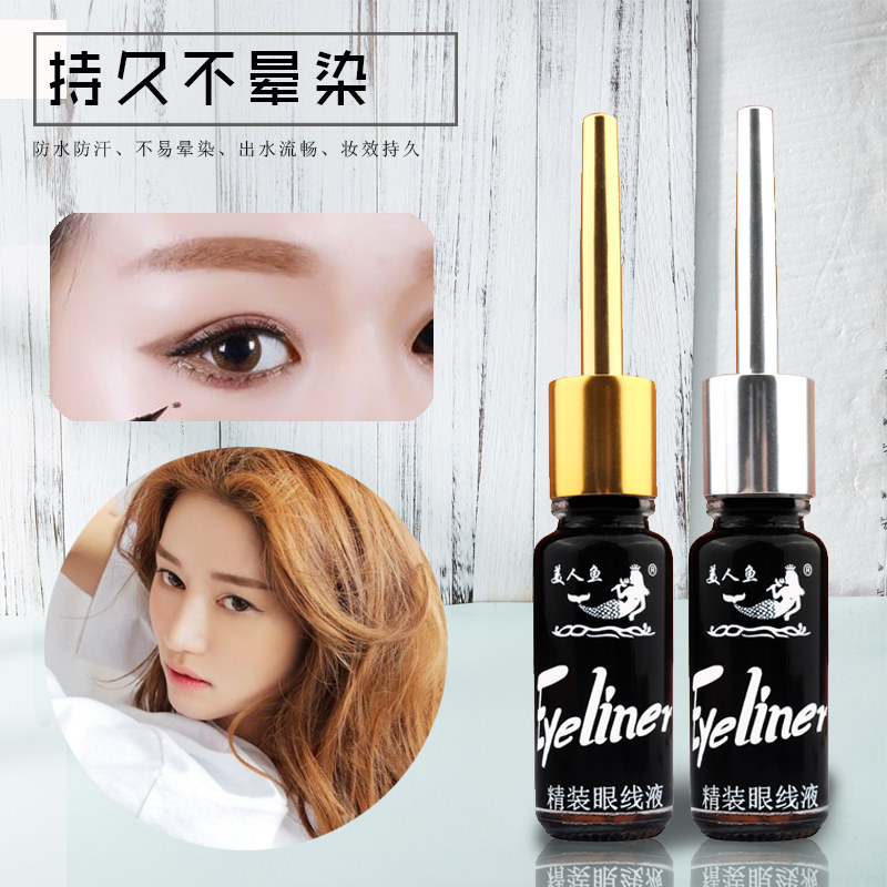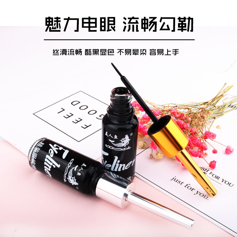 正品美人鱼金牌眼线液软硬头持久防水不晕染酷黑速干极细眼线水笔
