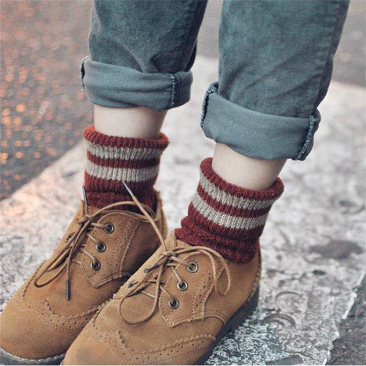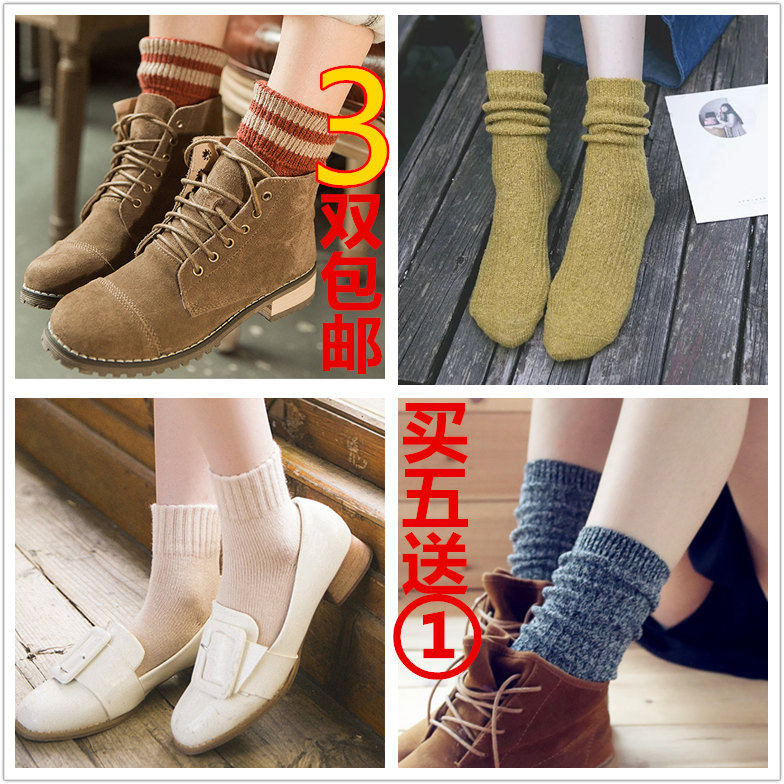 两条杠袜子女中筒韩国秋冬季保暖羊毛袜加厚棉复古日系针织堆堆袜