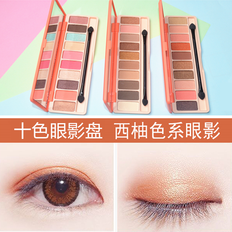 十色西柚色眼影盘 果汁橙色橘色酒红色眼影 哑光珠光桃花妆大地色