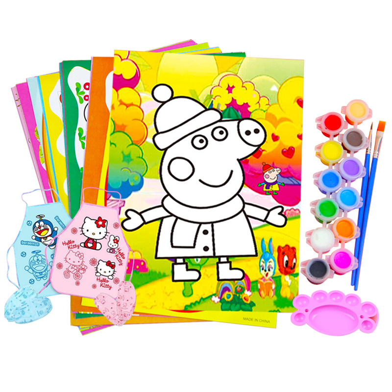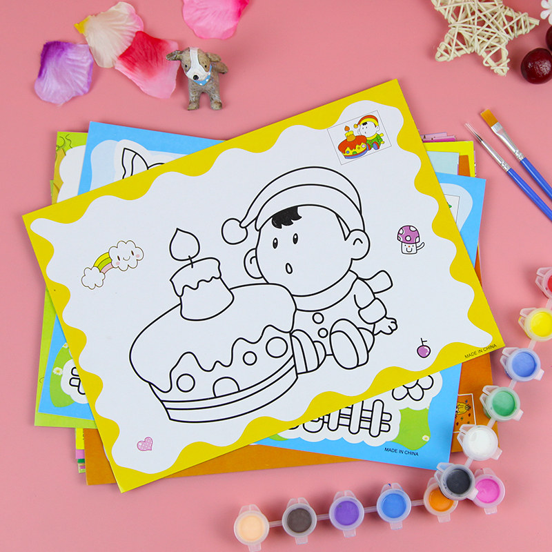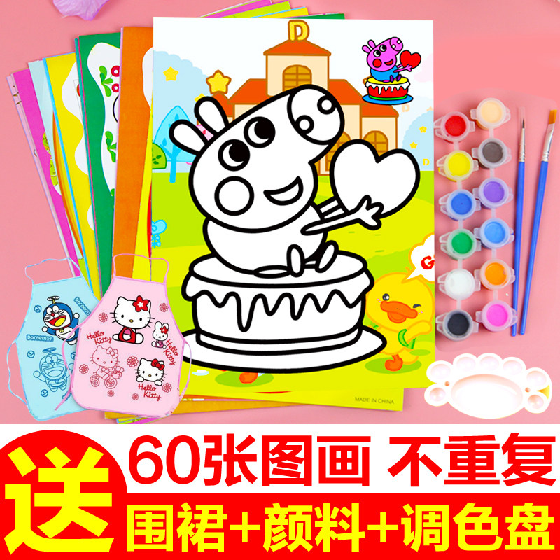 卡通儿童水彩画水粉画涂色填色幼儿园涂鸦画宝宝益智礼物画纸画本