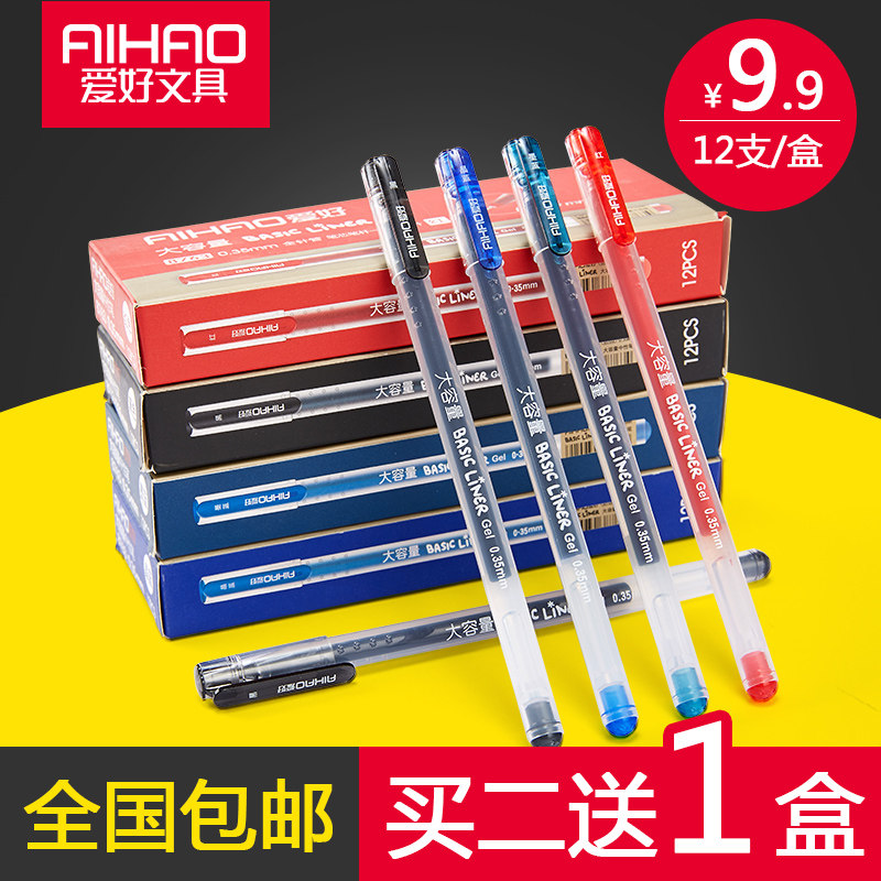 爱好大容量中性笔黑笔学生用0.5碳素笔0.35水笔签字笔办公文具批