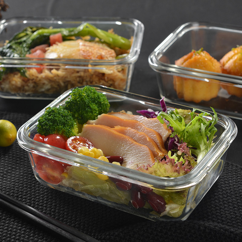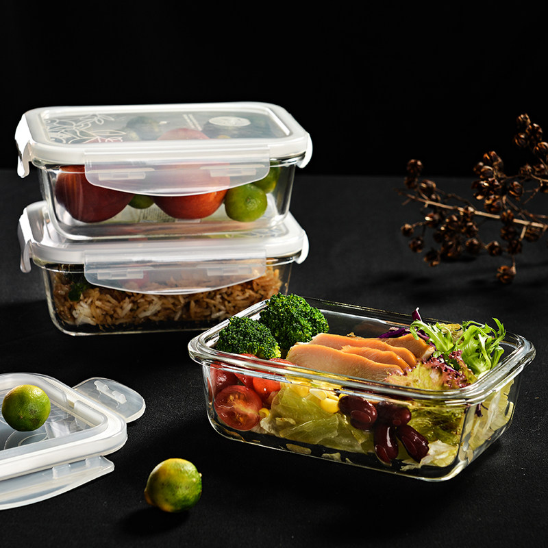 普业微波炉专用耐热玻璃保鲜盒长方形带盖便当盒密封冷冻圆形饭盒