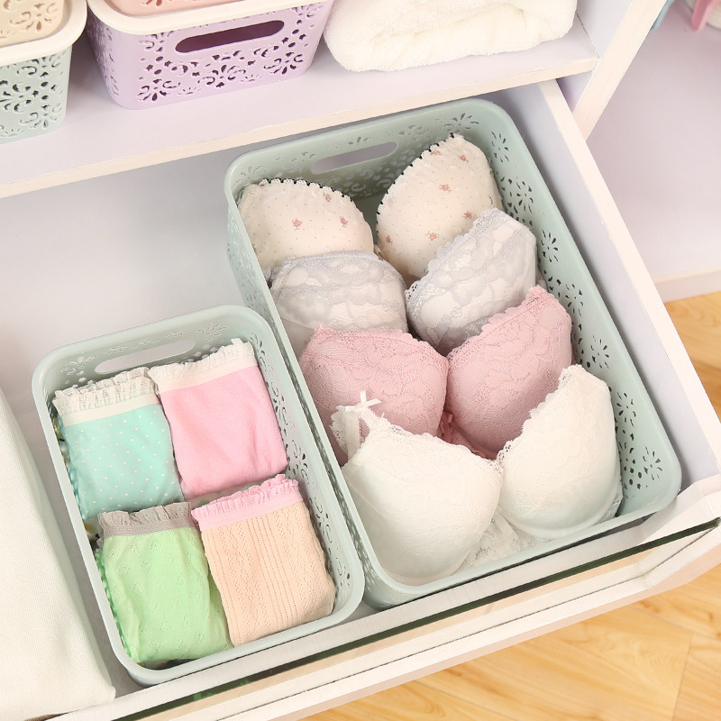 塑料化妆品收纳盒镂空抽屉书桌办公桌收纳杂物桌面内裤内衣储物盒