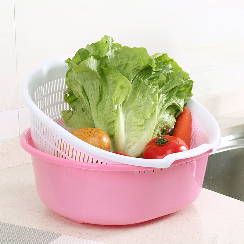 家用厨房洗菜篮子沥水篮创意双层沥水盆漏盆菜筐塑料水果篮洗菜盆