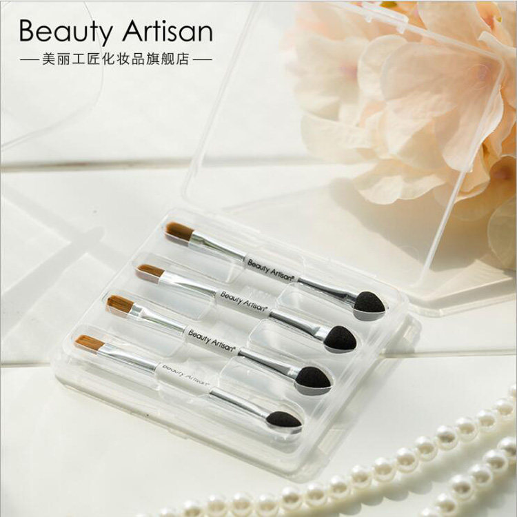 双头时尚便携海绵眼影棒 眼影刷化妆刷彩妆工具眼妆 4支装带盒