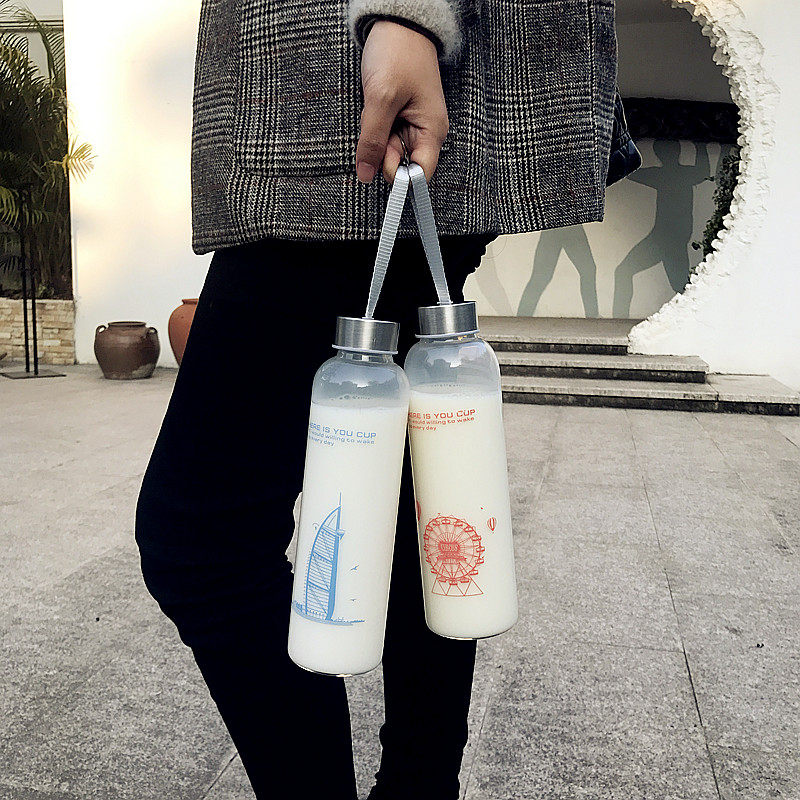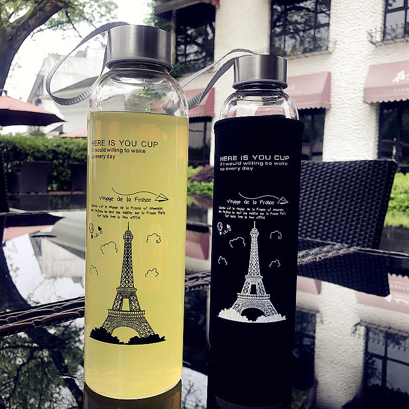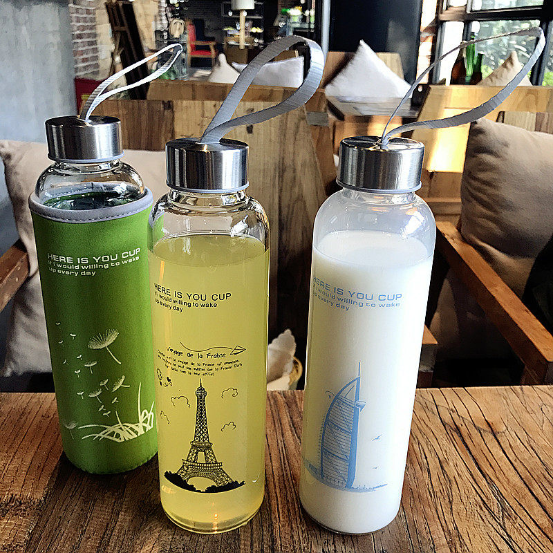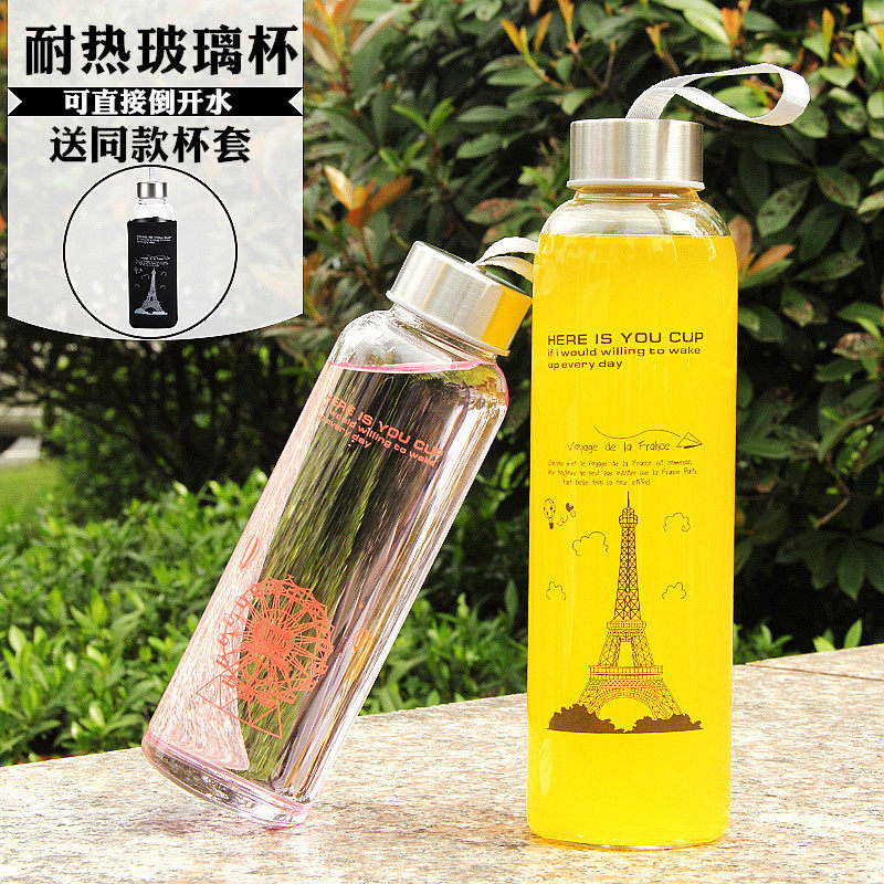 楚轩玻璃杯带盖便携创意定制刻字水杯子车载运动水瓶男女学生茶杯
