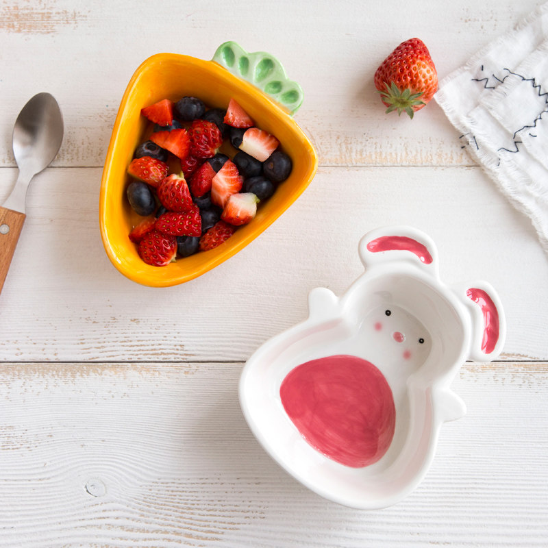 肆月 吃货兔 超萌卡通手绘小兔子胡萝卜陶瓷碗宝宝吃饭碗水果碗