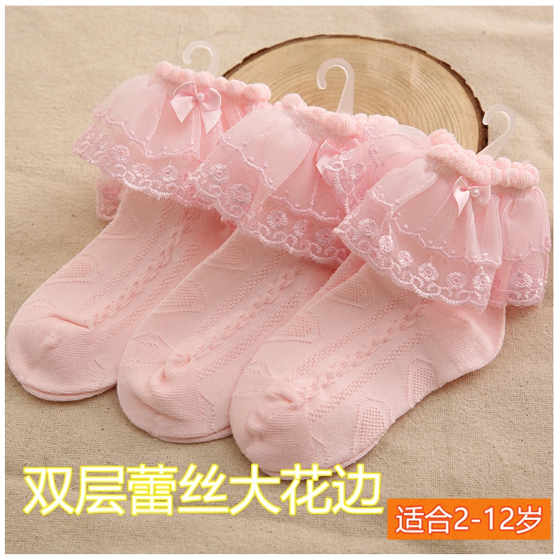 宝宝袜子夏季薄款女童花边蕾丝儿童拉丁舞蹈婴儿女白色短袜公主袜