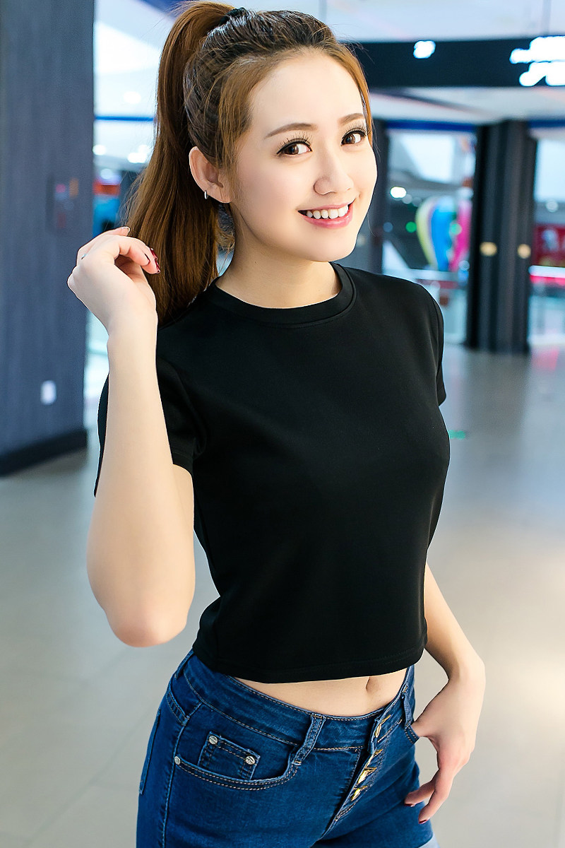 9.9包邮夏季露脐短款短袖T恤女修身漏肚脐高腰紧身打底衫女上衣潮