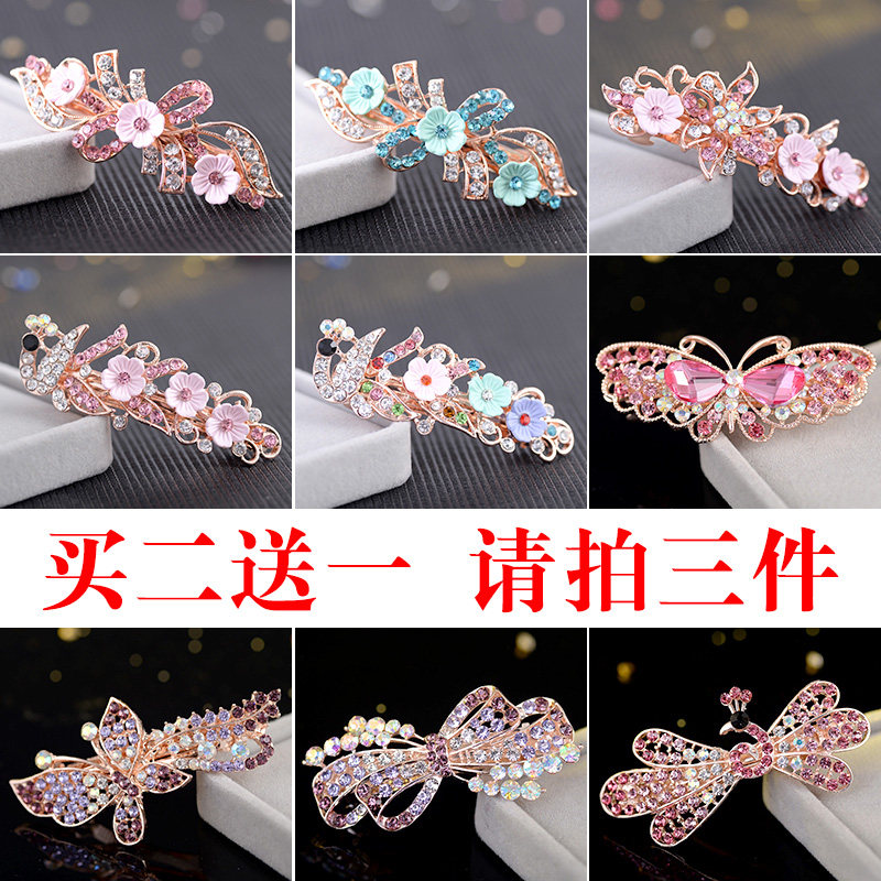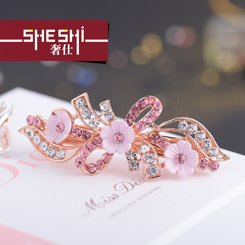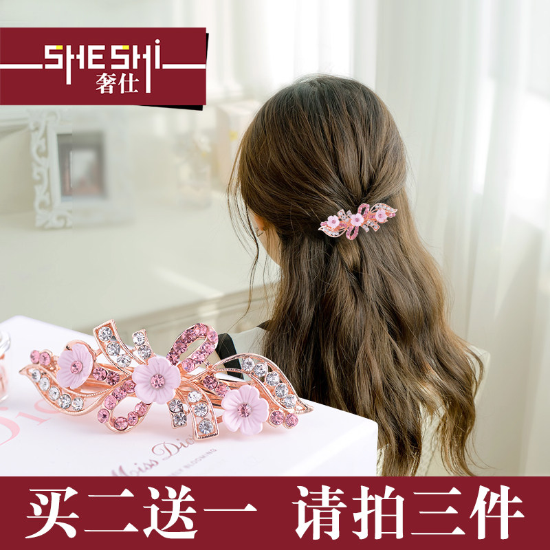 顶夹小号弹簧夹水钻蝴蝶结百搭韩国发卡后脑勺盘发夹子边夹刘海夹