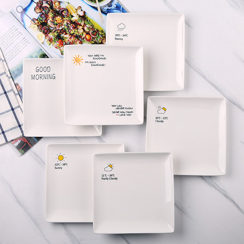 方盘陶瓷创意盘子 字母天气碟子西餐盘点心蛋糕菜盘 家用牛排盘子