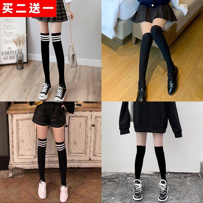过膝袜女长袜潮春秋长筒jk袜子中筒半截膝盖高筒薄款黑色腿袜夏季