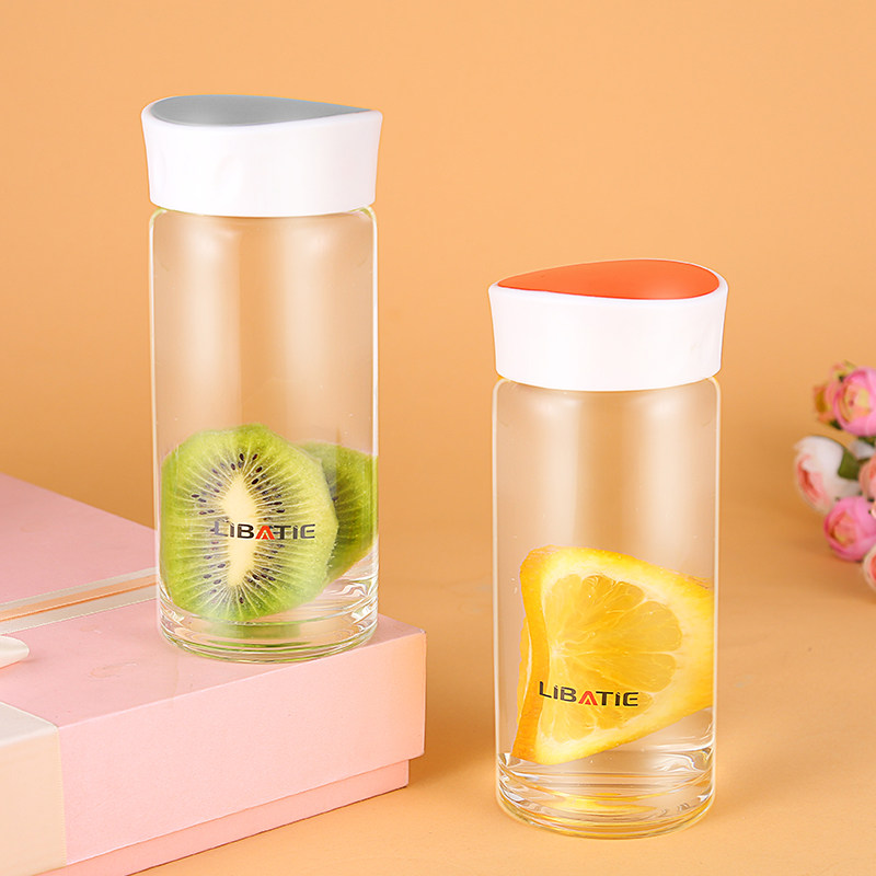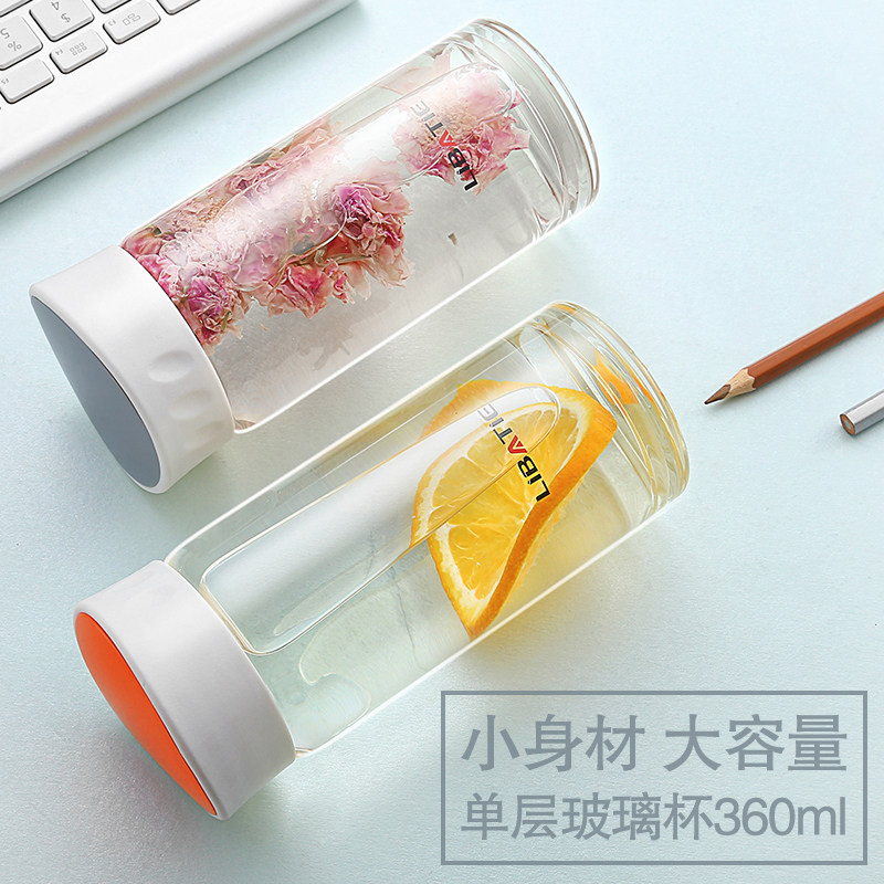 LB玻璃杯单层便携随手杯创意透明办公杯子男女学生杯子泡花茶水杯