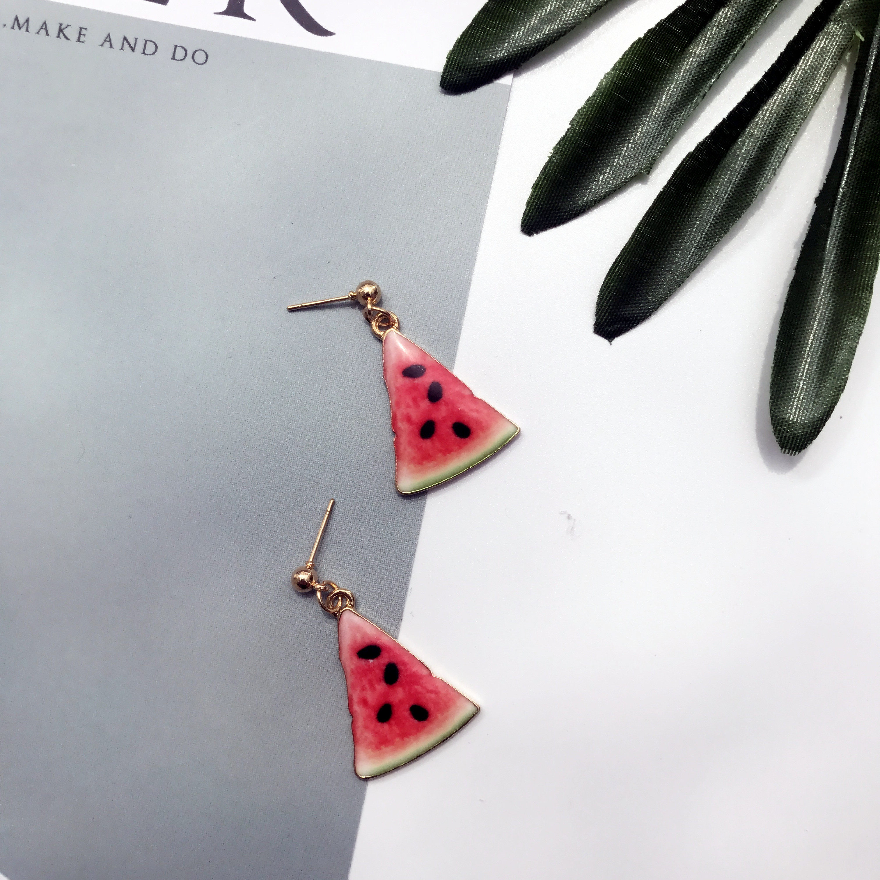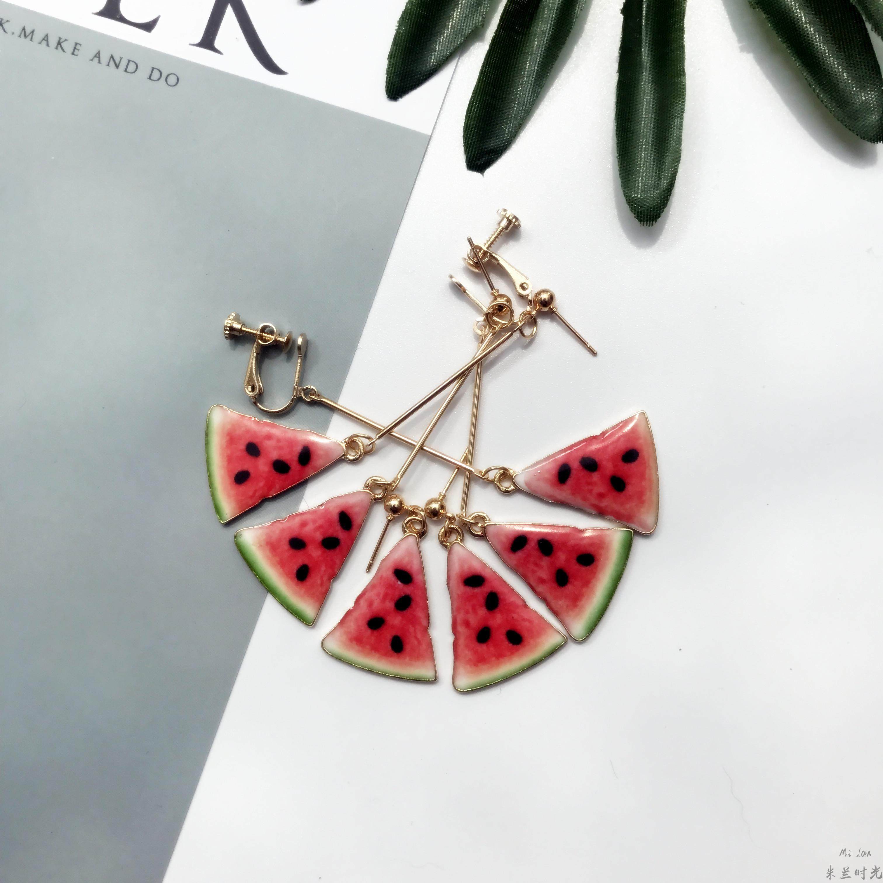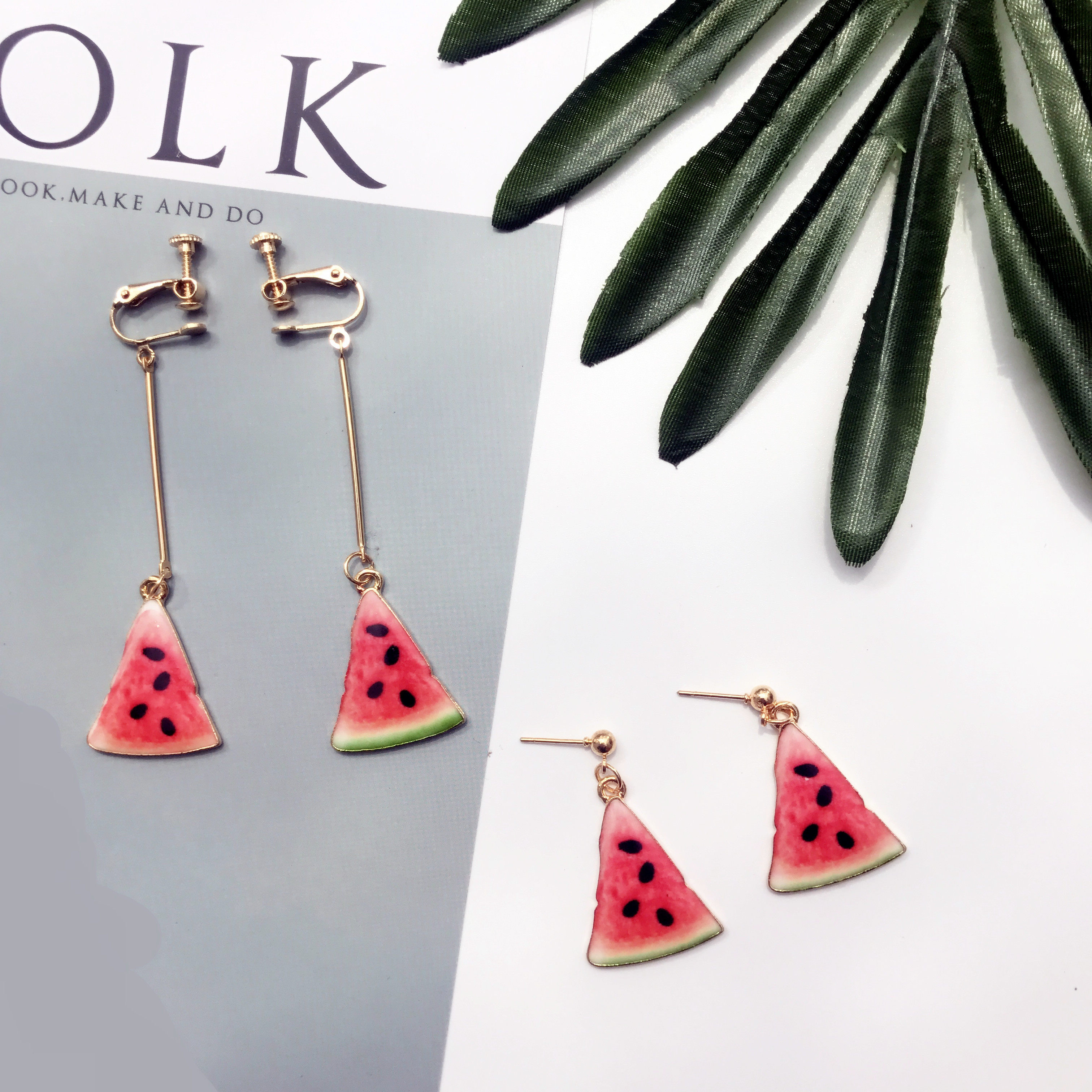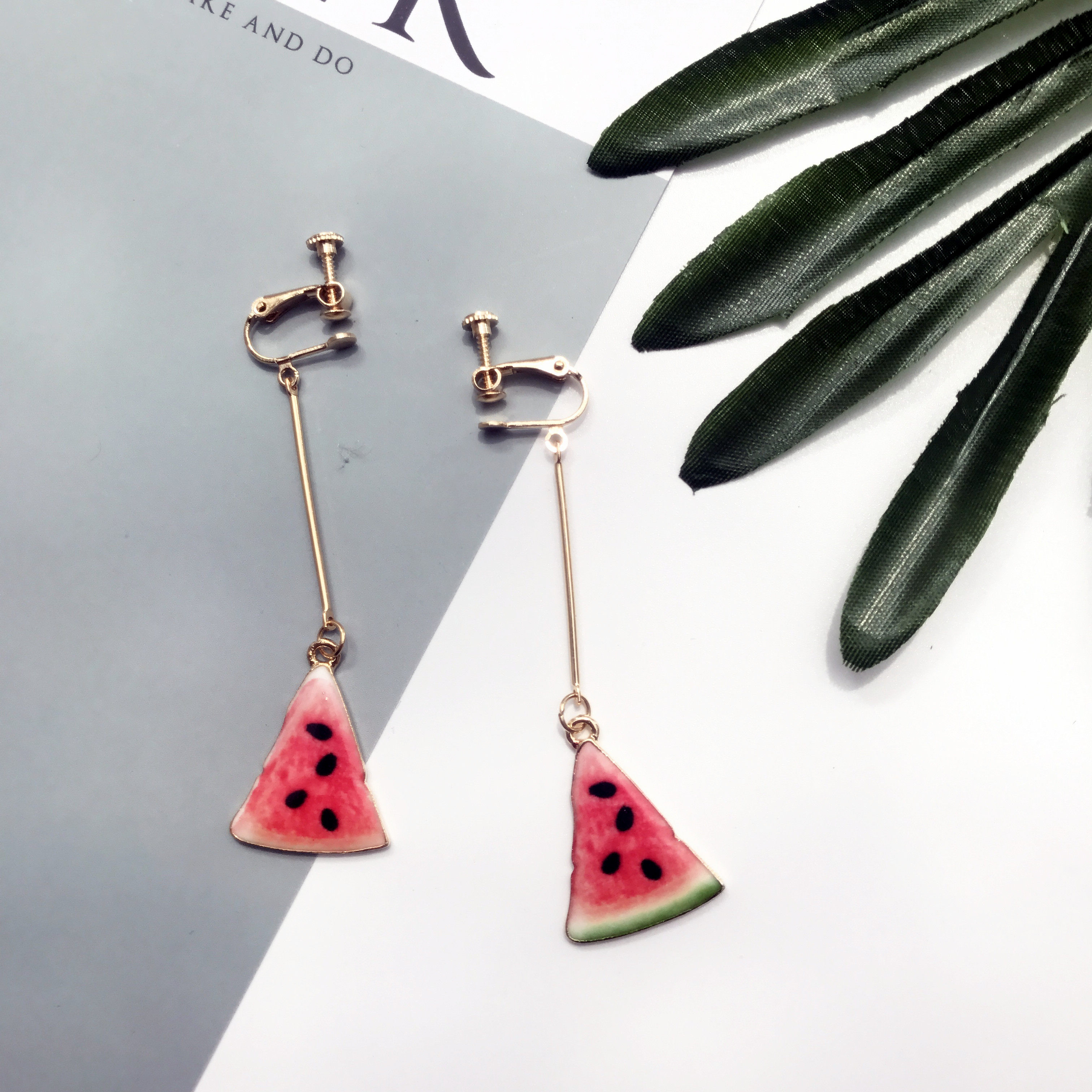 夏日西瓜小清新可爱耳钉女韩国夏日甜美长款个性水果无耳洞耳夹