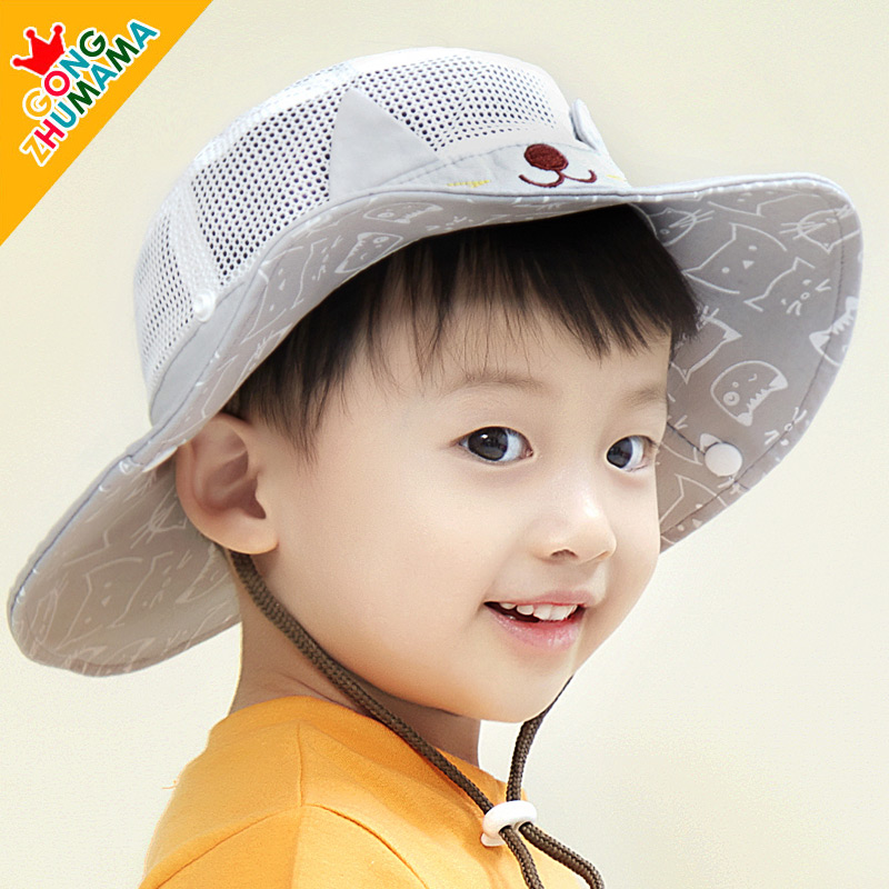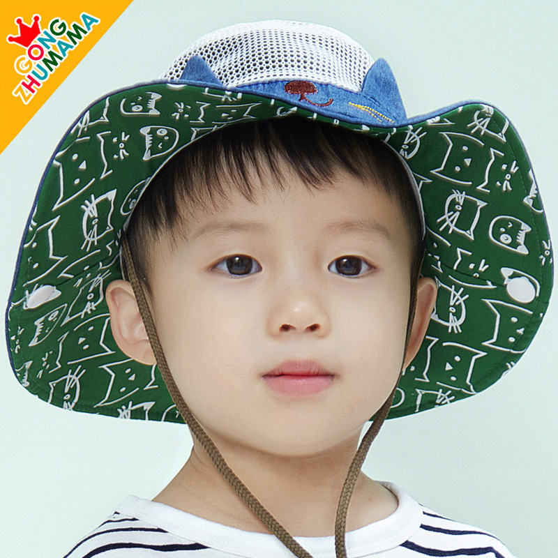 儿童帽子太阳帽儿童帽子盆帽网帽1-2-4岁遮阳帽大檐帽防晒春夏
