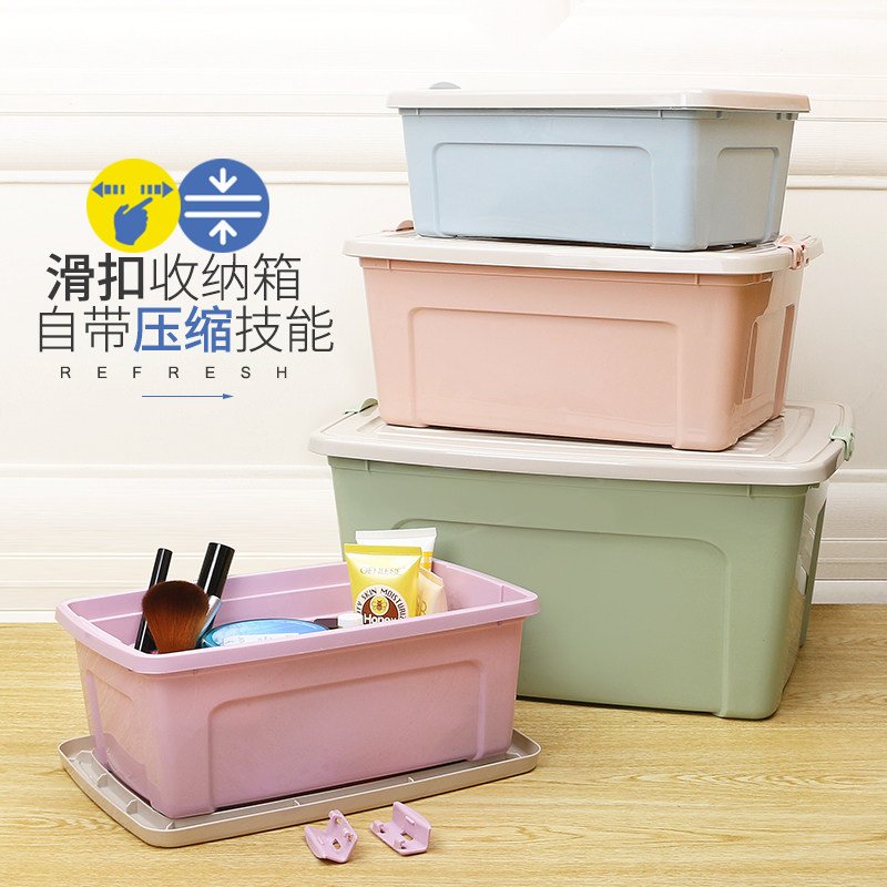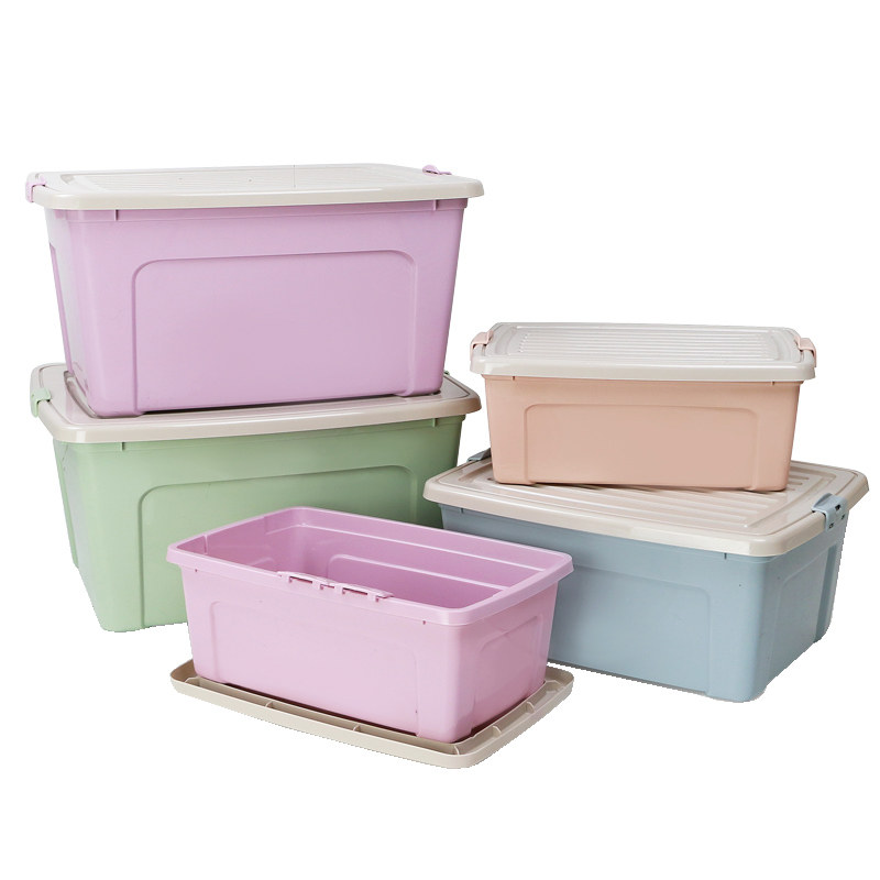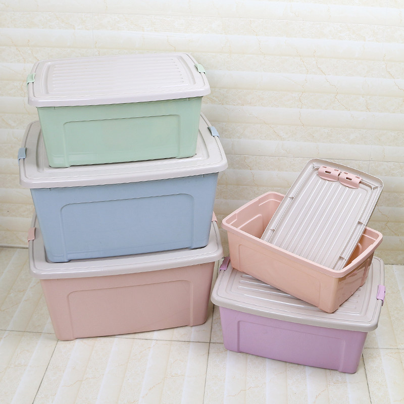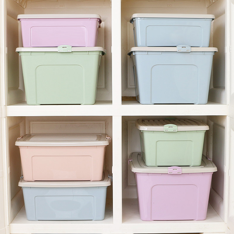 素色有盖塑料收纳箱整理箱子儿童玩具储物箱零食收纳盒衣物储物盒