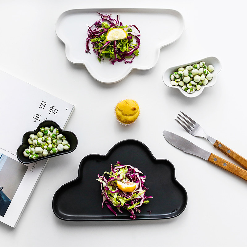 肆月。云海 创意哑光磨砂云朵早餐盘陶瓷水果点心盘子雨滴调味碟
