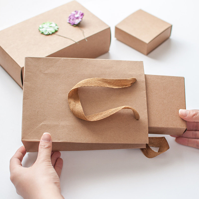 现货牛皮纸盒抽屉式长方形包装礼品盒复古文艺礼品盒商务礼盒
