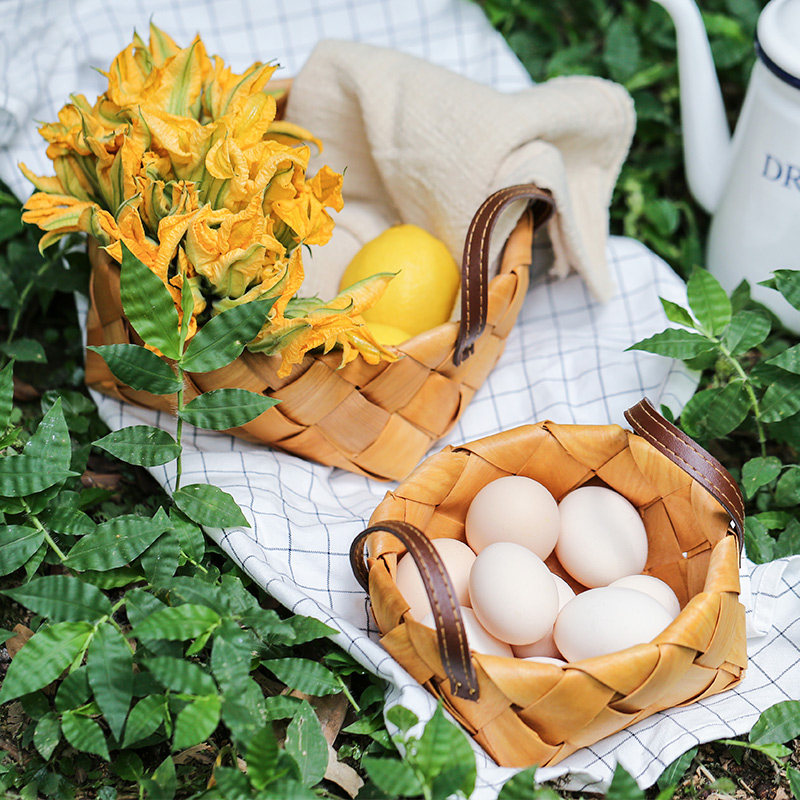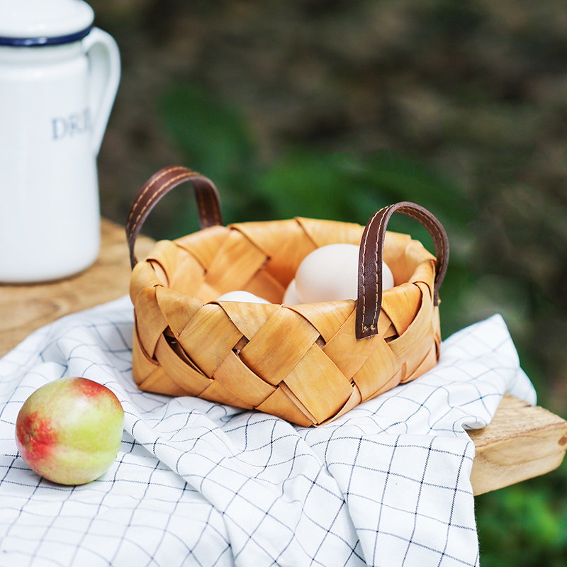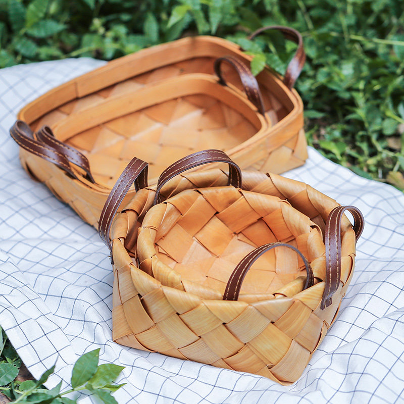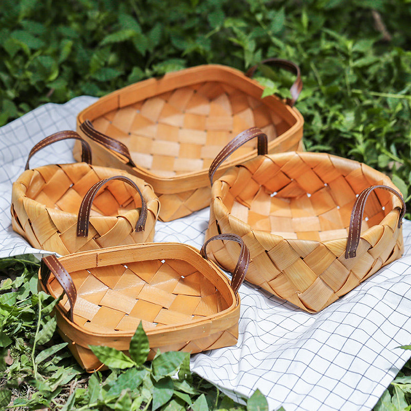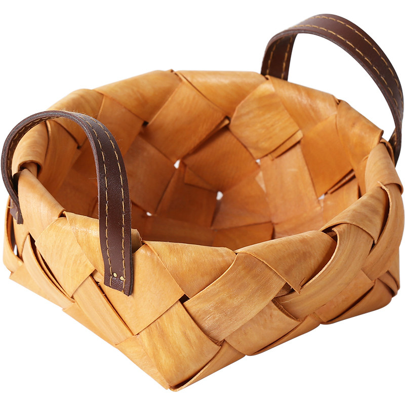 肆月 木蘅 原木木片编织篮水果篮收纳筐收纳篮桌面创意手工小篮子