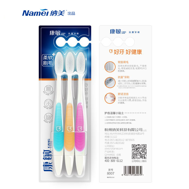 【买2套送1套】纳美3支纳米软毛牙刷 青春L 康敏 精明成人家庭装