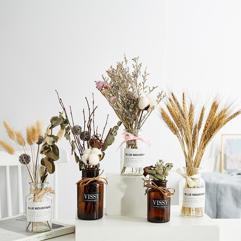 北欧小棕瓶ins家居创意水培容器透明玻璃花瓶餐桌摆件客厅装饰品