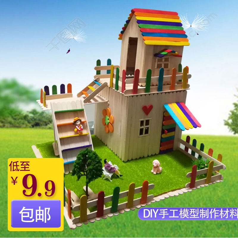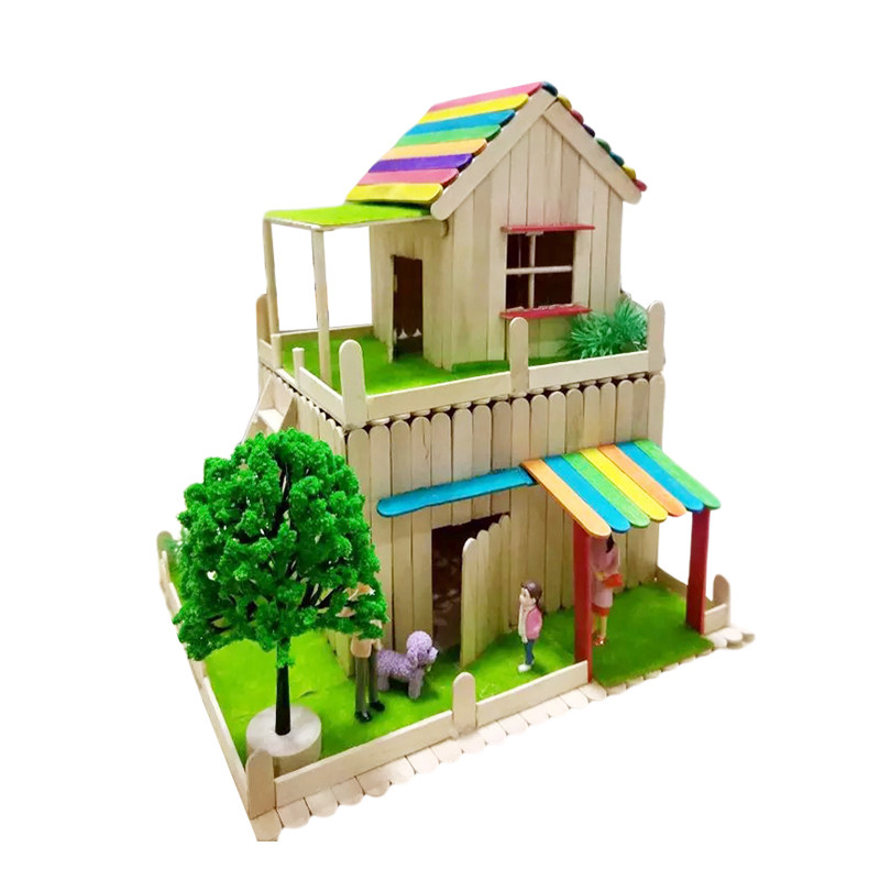 儿童幼儿园小学生diy手工创意小制作雪糕冰棍棒拼装模型小屋材料