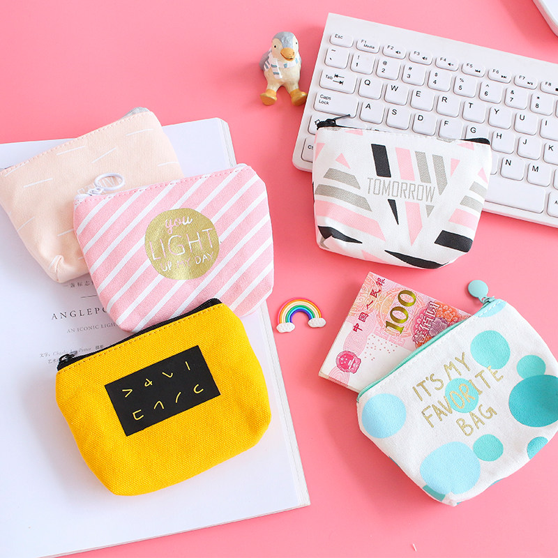 韩国新款简约韩版零钱包女迷你硬币包小钱包女短款布艺零钱袋帆布