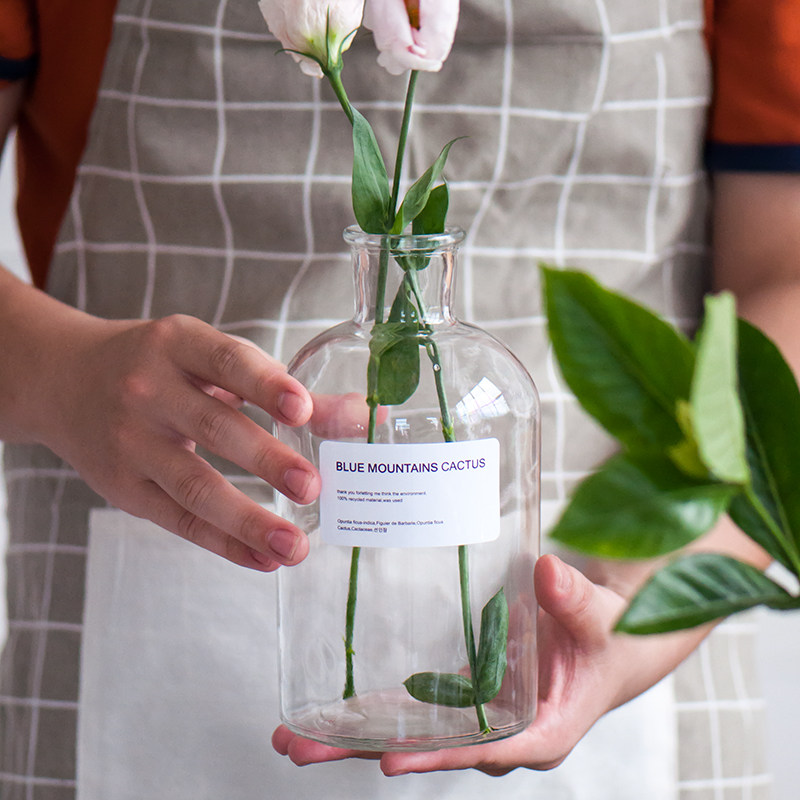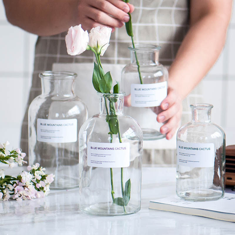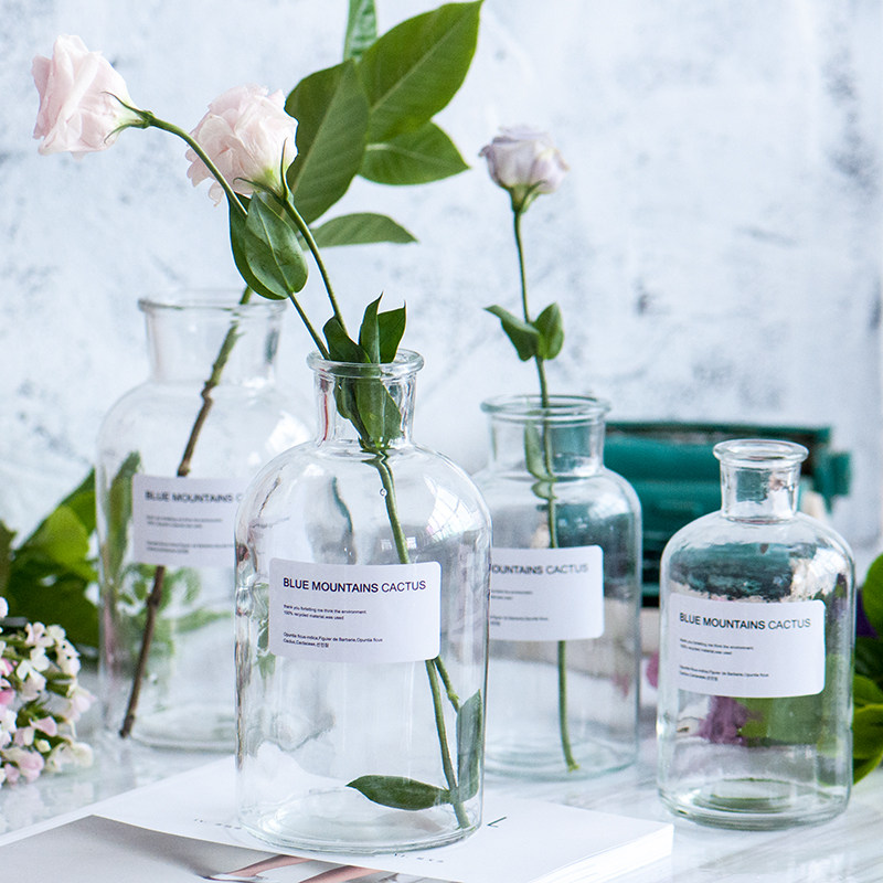北欧ins风透明玻璃花瓶 文艺风英文贴纸花器摆件 水培瓶 家居装饰