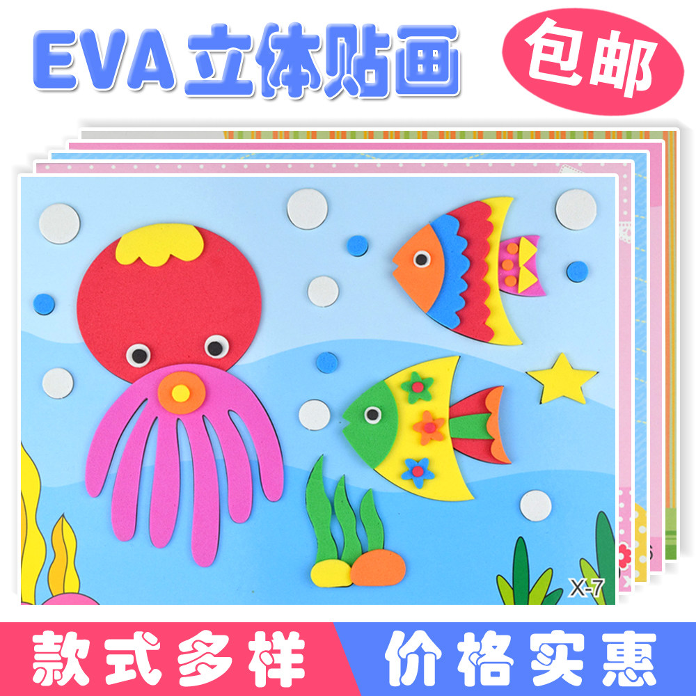 儿童EVA贴画手工制作玩具 幼儿园DIY粘贴画 卡通3D艺术立体材料包