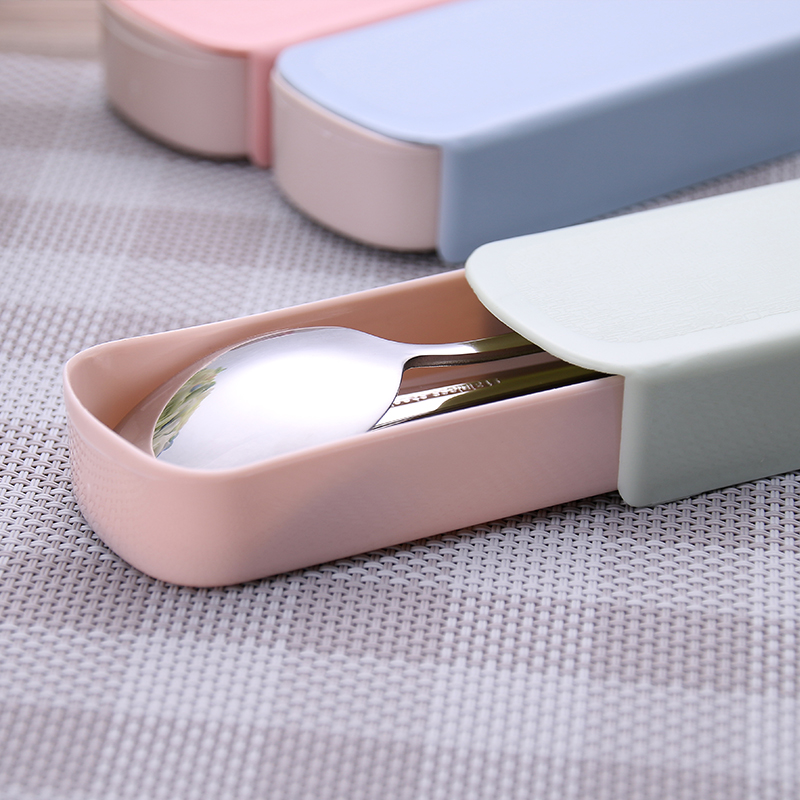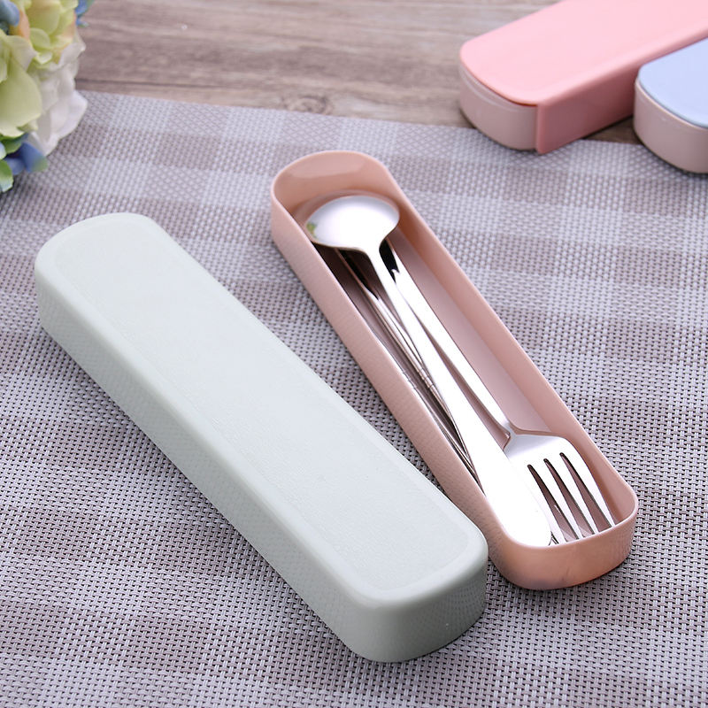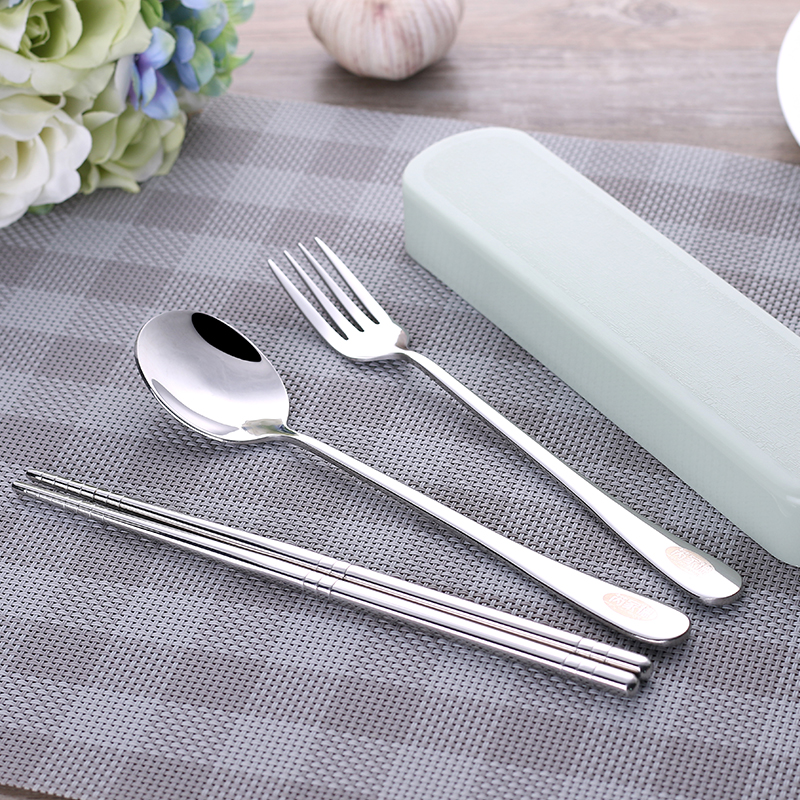 韩式不锈钢便携式餐具筷子勺子叉子三件套装便携餐具成人旅行盒子