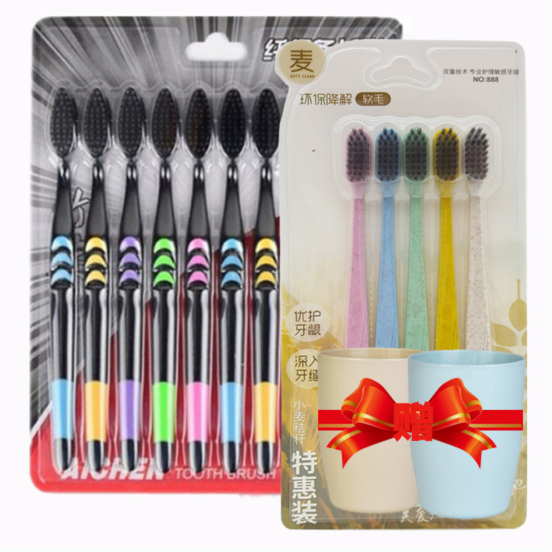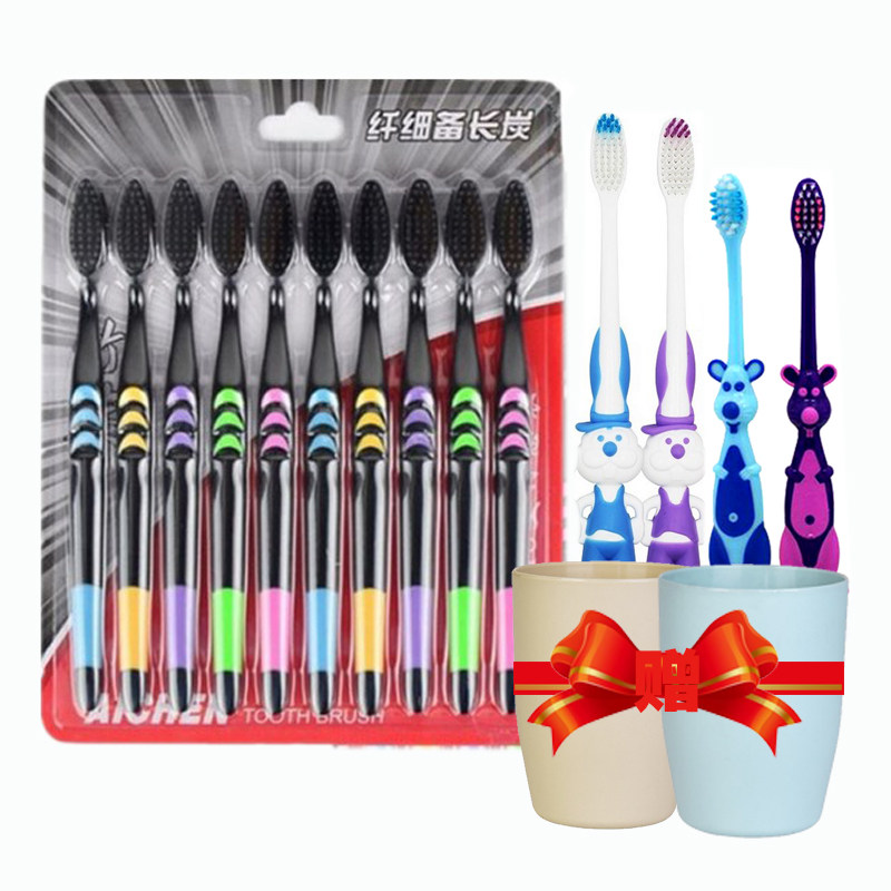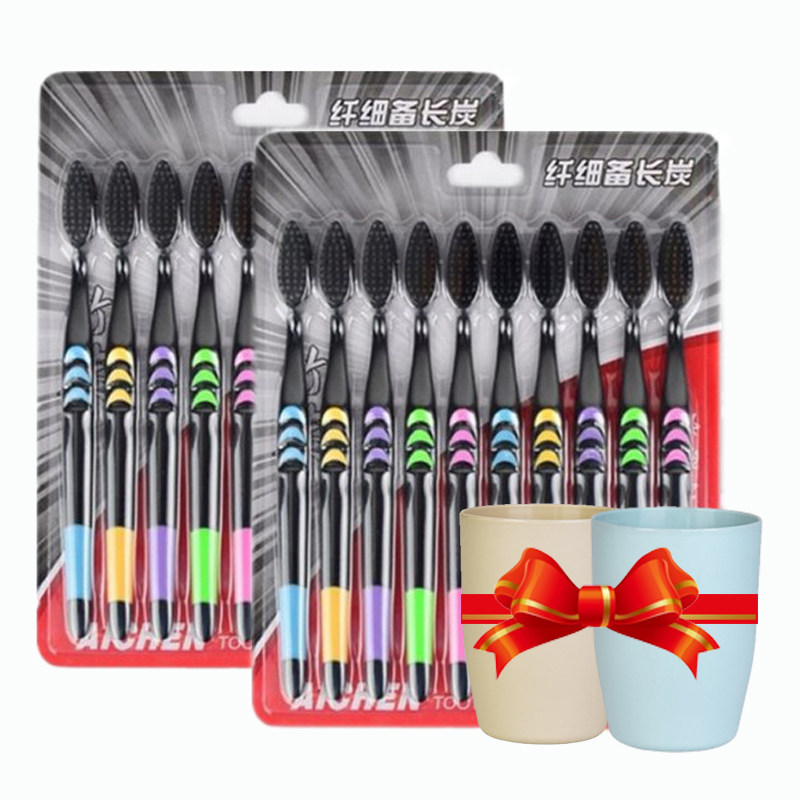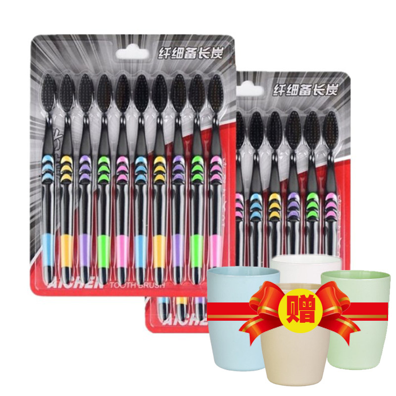 【天天特价】竹炭牙刷成人软毛牙刷备长炭细软毛牙刷家庭装20支