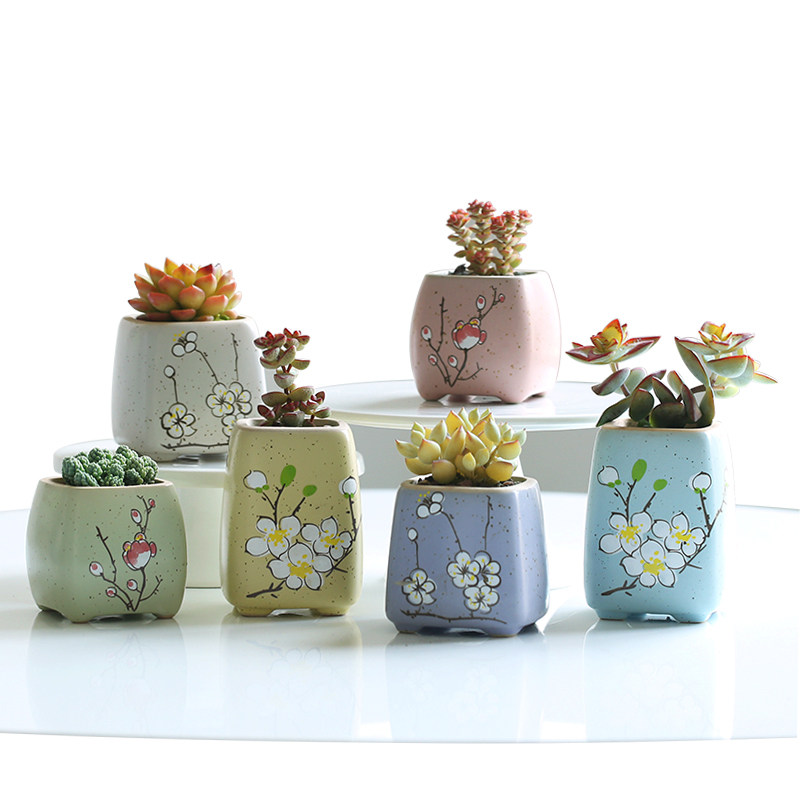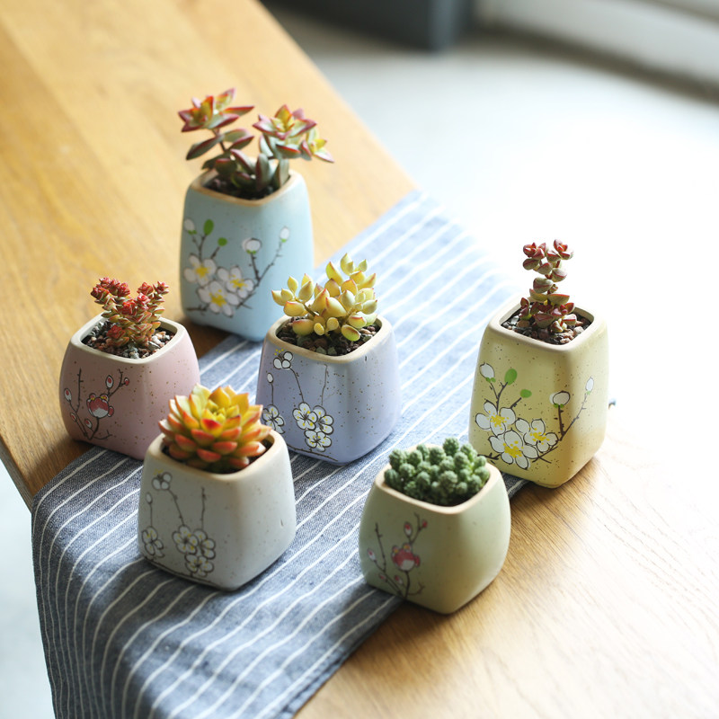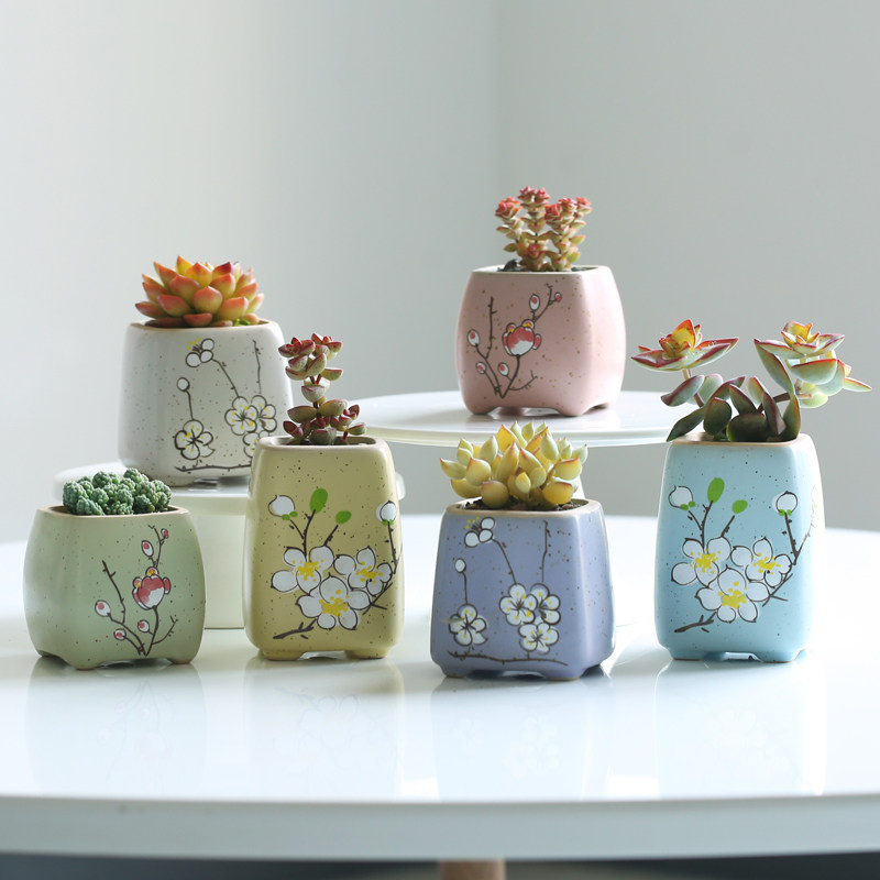 壹分皿多肉植物花盆小清新手绘创意花盆陶瓷多肉花盆肉肉绿植花盆