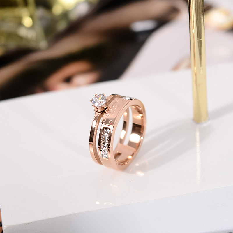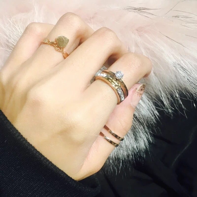 网红食指钛钢戒指女不掉色日韩玫瑰金潮人学生个性大气时尚指环女