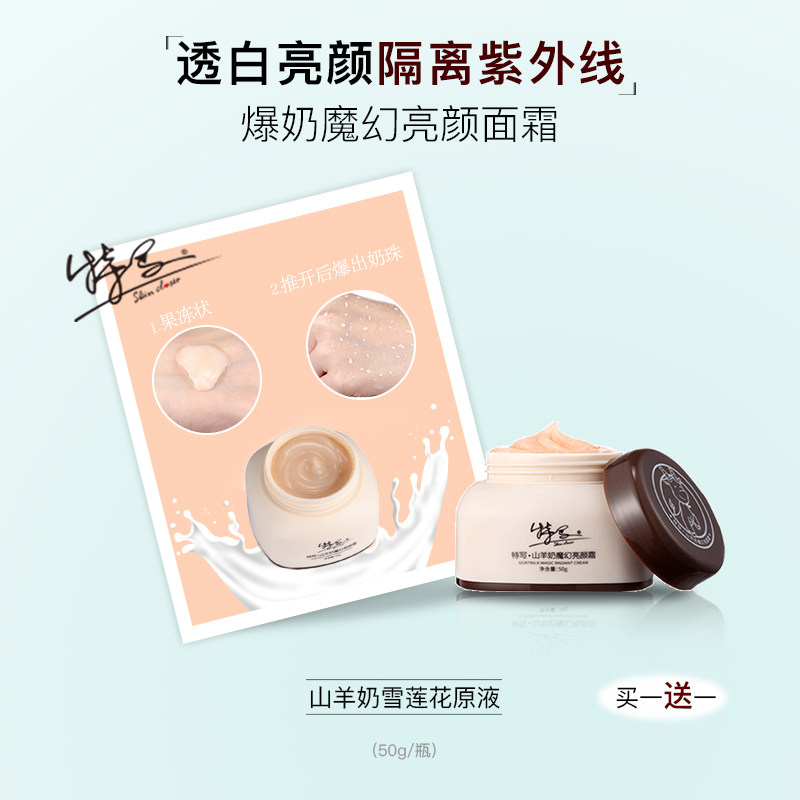 特写爆奶原液亮白素颜面霜 保湿祛黄男女士日用裸妆精华霜 买1送1