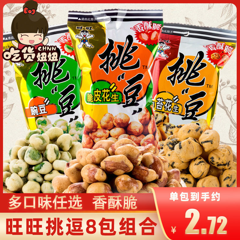 旺旺挑豆50gX8包海苔脆皮花生/豌豆/蚕豆炒货下酒菜休闲零食小吃