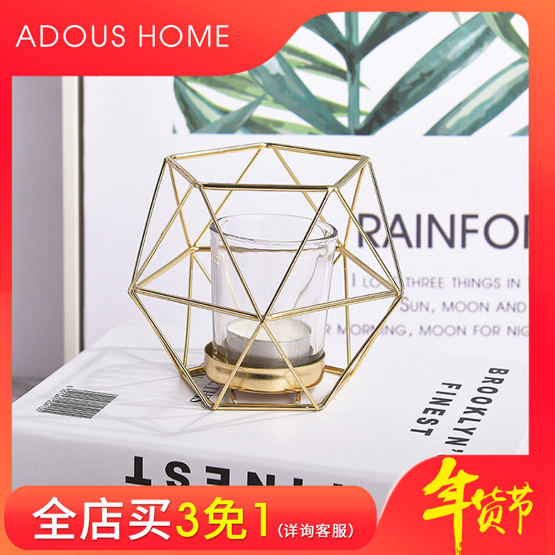 INS欧式铁艺烛台北欧玻璃香薰蜡烛杯浪漫西晚餐复古餐桌创意摆件