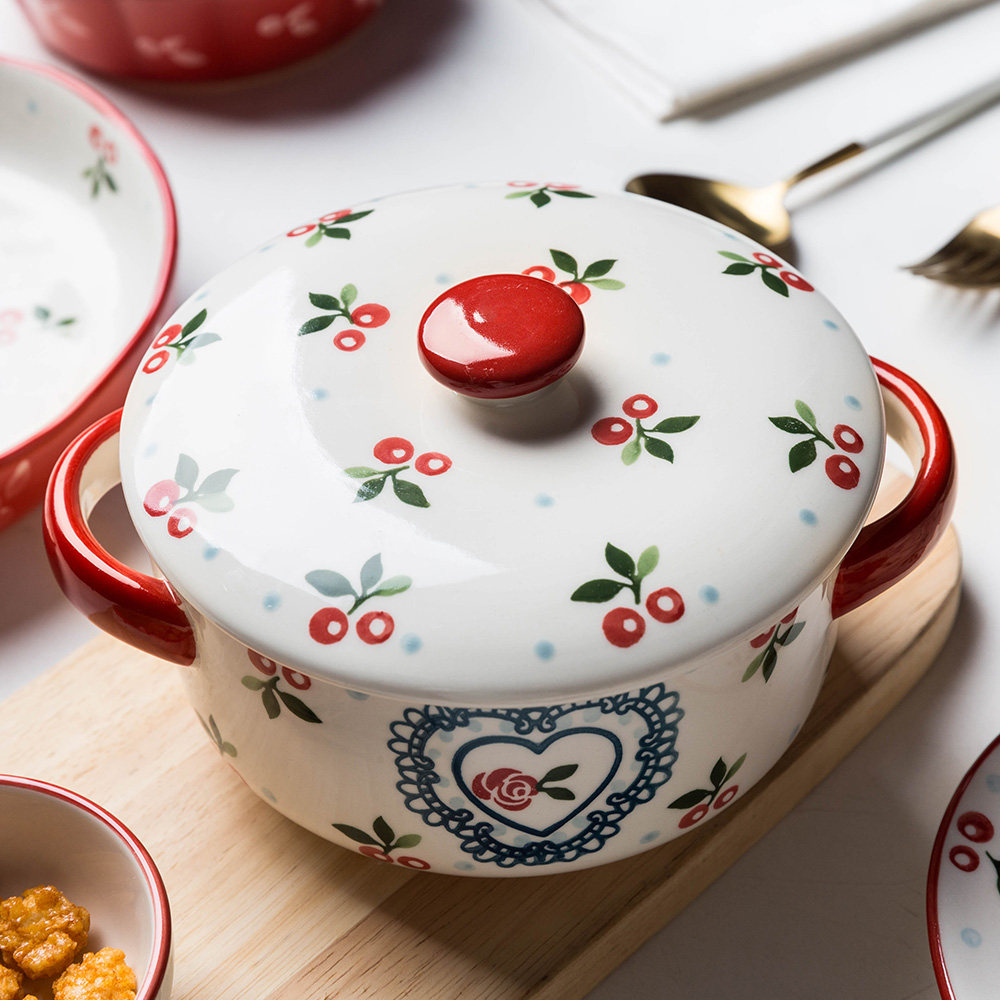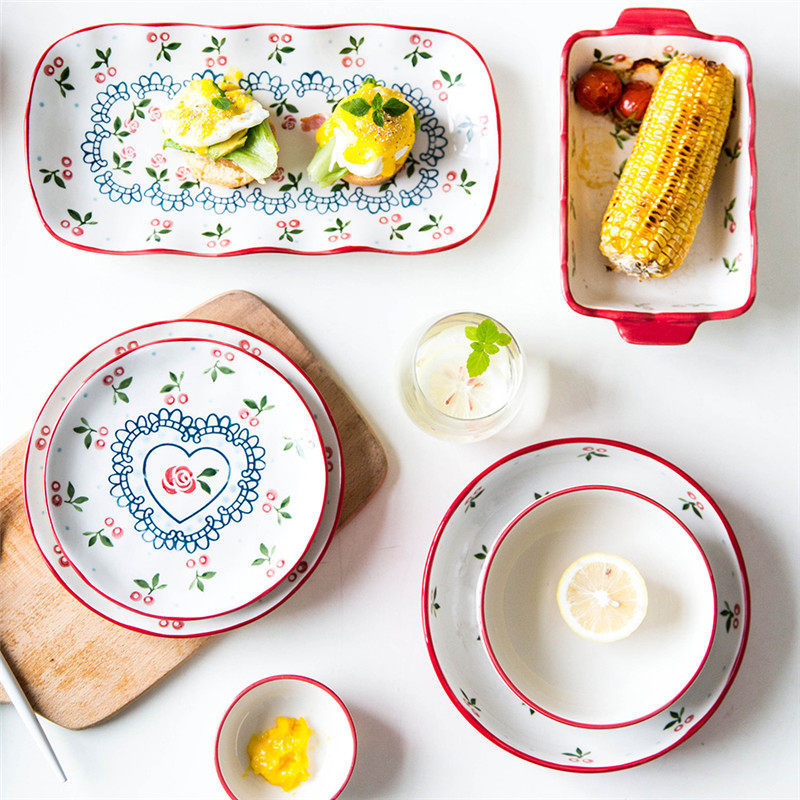 摩登主妇日式创意樱桃陶瓷餐具家用大号盘子菜盘沙拉碗鱼盘碗盘