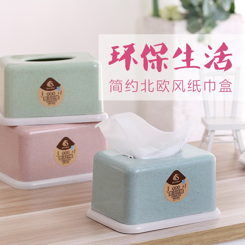 小麦北欧式塑料纸巾盒家用茶几抽纸盒创意客厅餐巾纸收纳盒纸抽盒