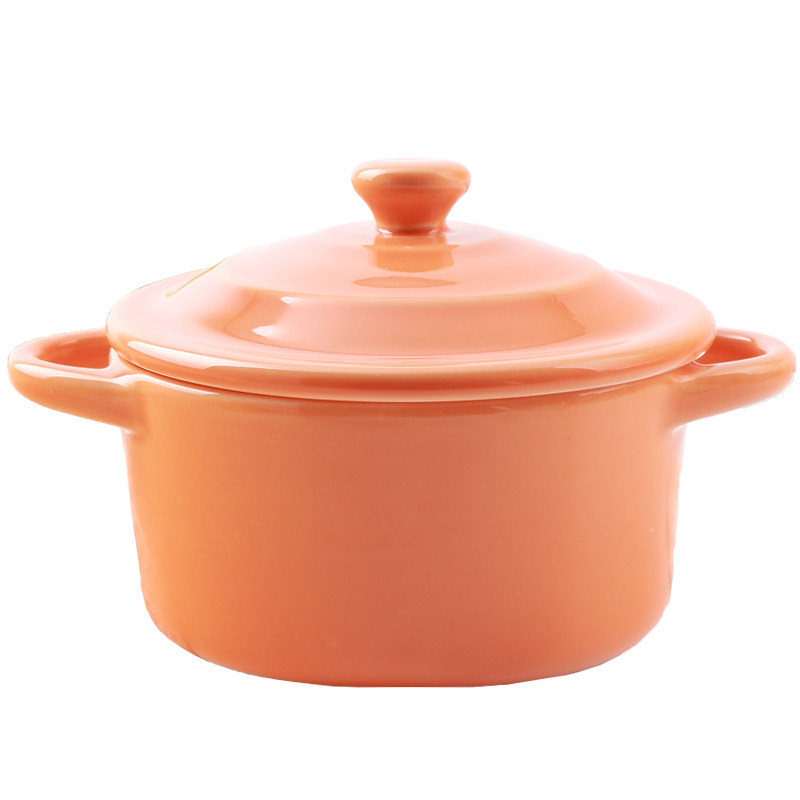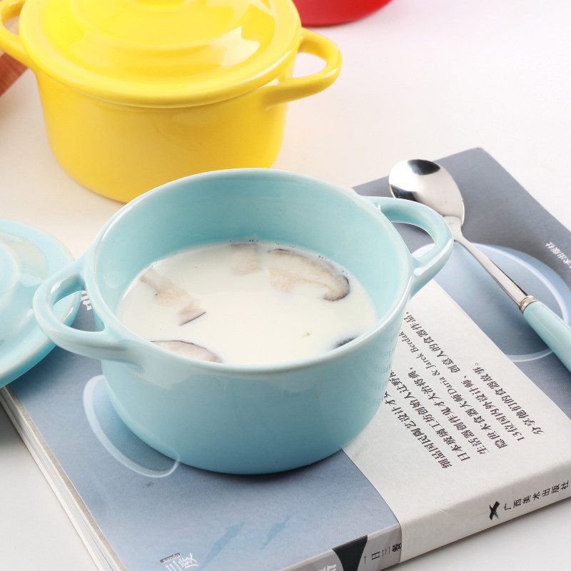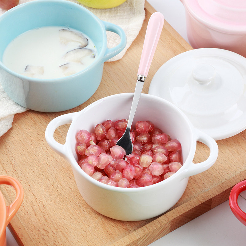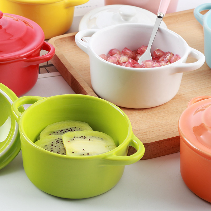 景德镇陶瓷双耳带盖多色烘焙小烤碗布丁甜品碗慕斯蛋糕家用早餐碗