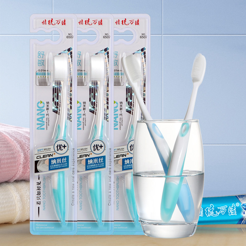 情梳万缕纳米牙刷 细毛软毛牙刷 成人牙刷 家用旅行套装3只装包邮