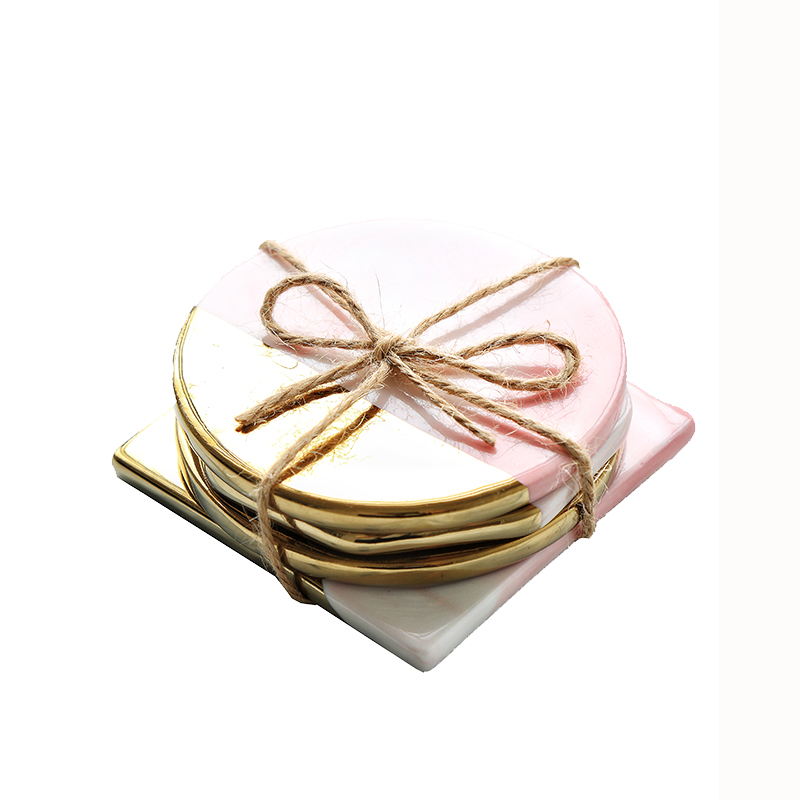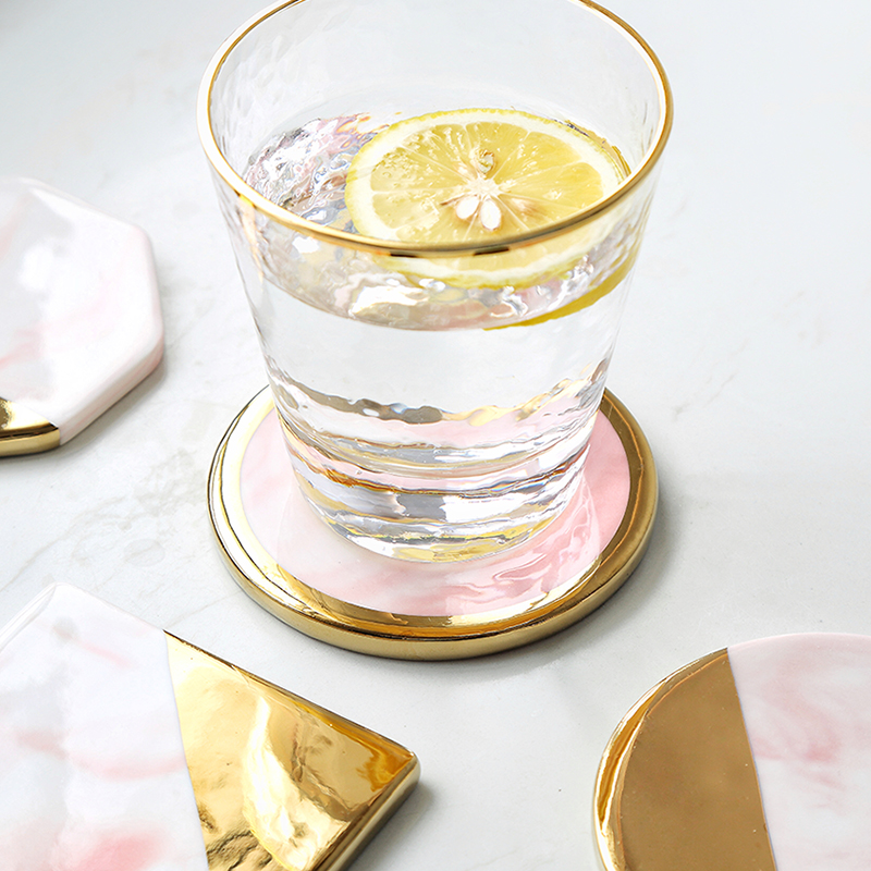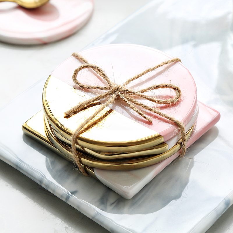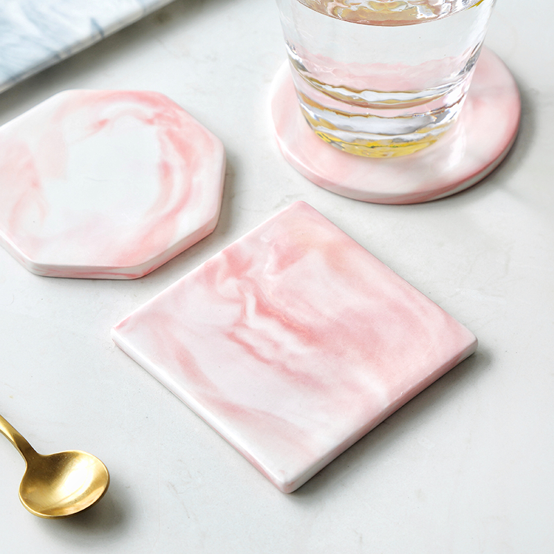 北欧风粉色大理石纹杯垫创意简约陶瓷杯垫家用欧式家居装饰品摆件