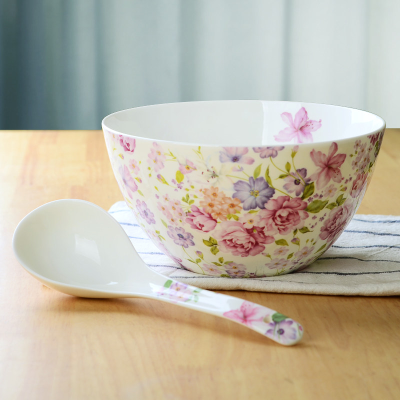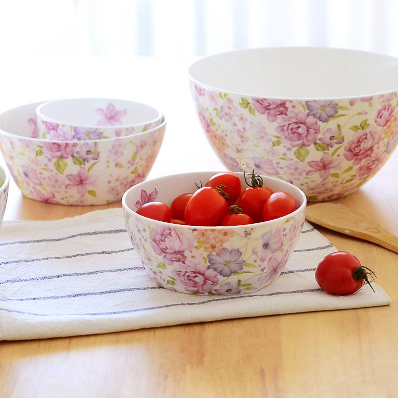 骨瓷餐具陶瓷碗家用吃饭饭碗瓷碗汤碗面碗韩式花纹方碗创意方形碗