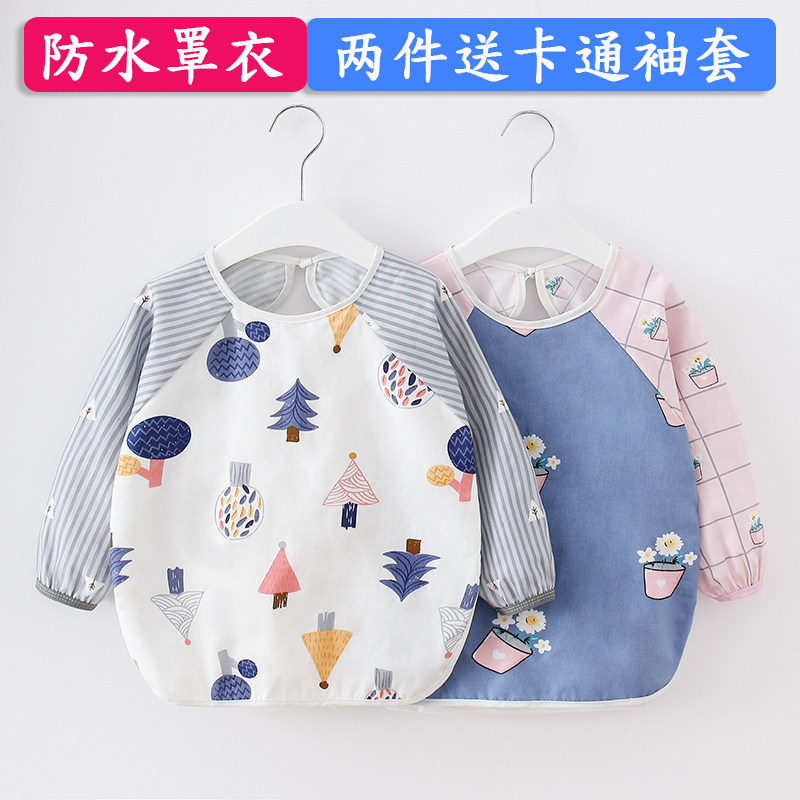 宝宝吃饭罩衣围兜婴儿纯棉防水防脏长袖儿童画画衣围裙夏款反穿衣