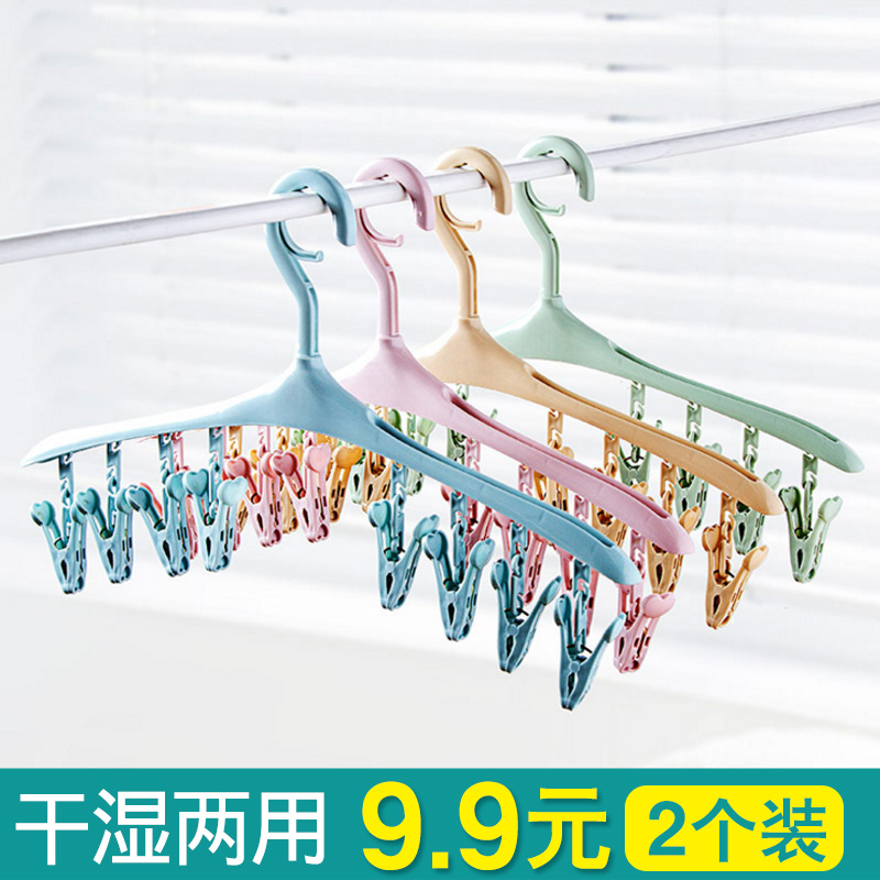 (2只装)创意8夹子防风卡扣多功能衣架塑料衣服晾晒架袜子内衣架