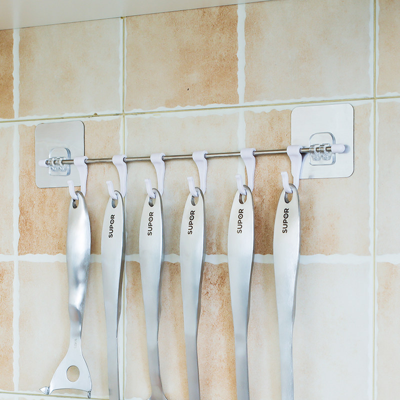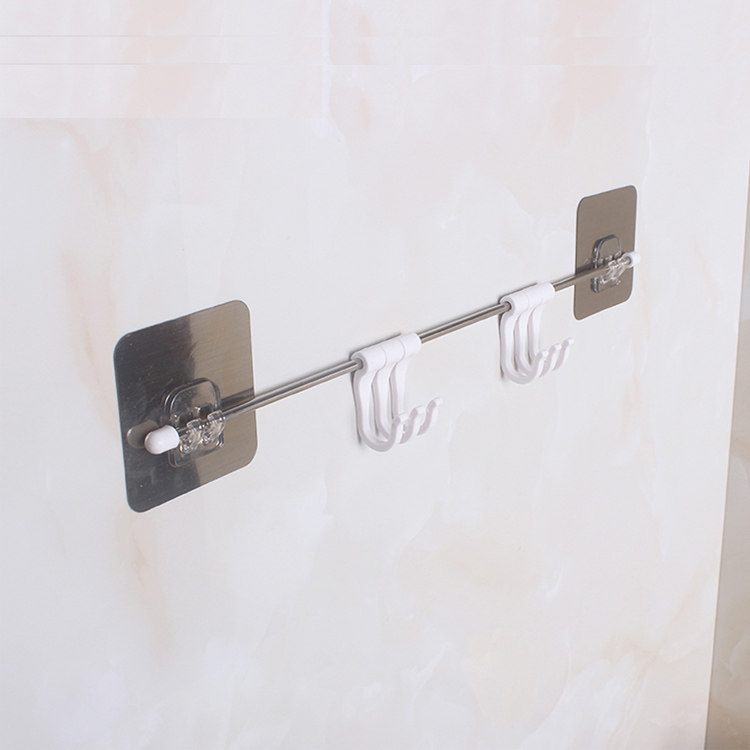 多功能厨房挂钩吸壁式免打孔不锈钢厨卫挂件多钩粘钩置物架子家用