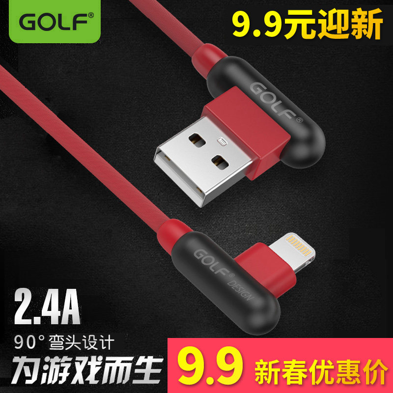 GOLF 苹果6弯头充电线游戏快充数据线iphone 6 7 8 5s iphone x 充电数据线 苹果6s数据线 苹果7数据线