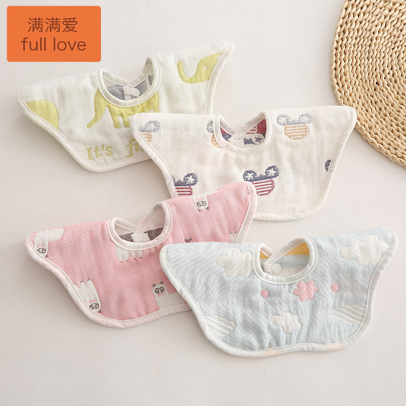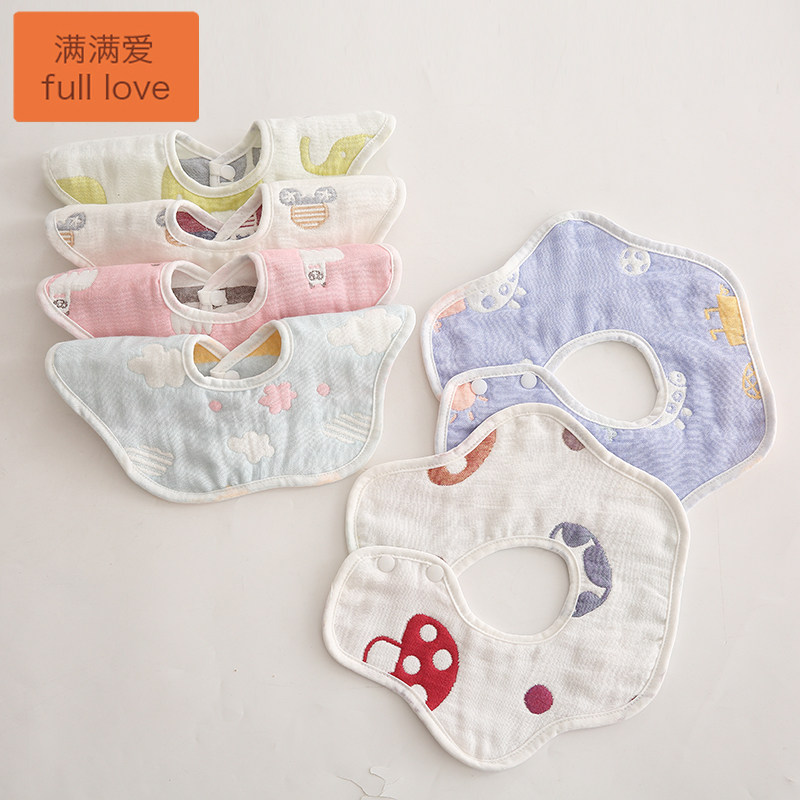 6层纱布360度旋转婴儿口水巾围嘴纯棉纱布宝宝围嘴兜新生儿饭兜