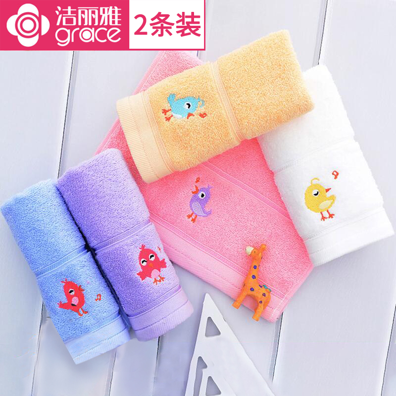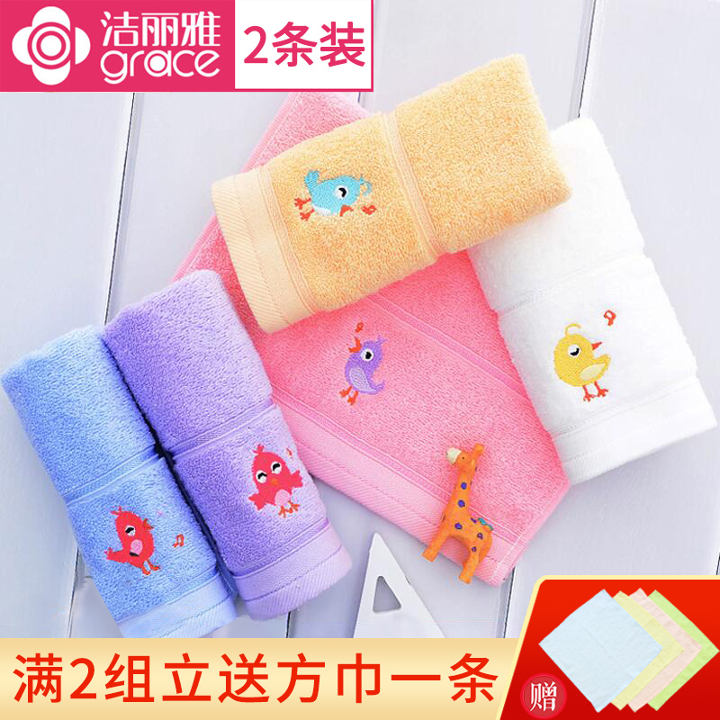 洁丽雅儿童毛巾纯棉洗脸家用小长方形小孩洗澡全棉吸水专用软 2条